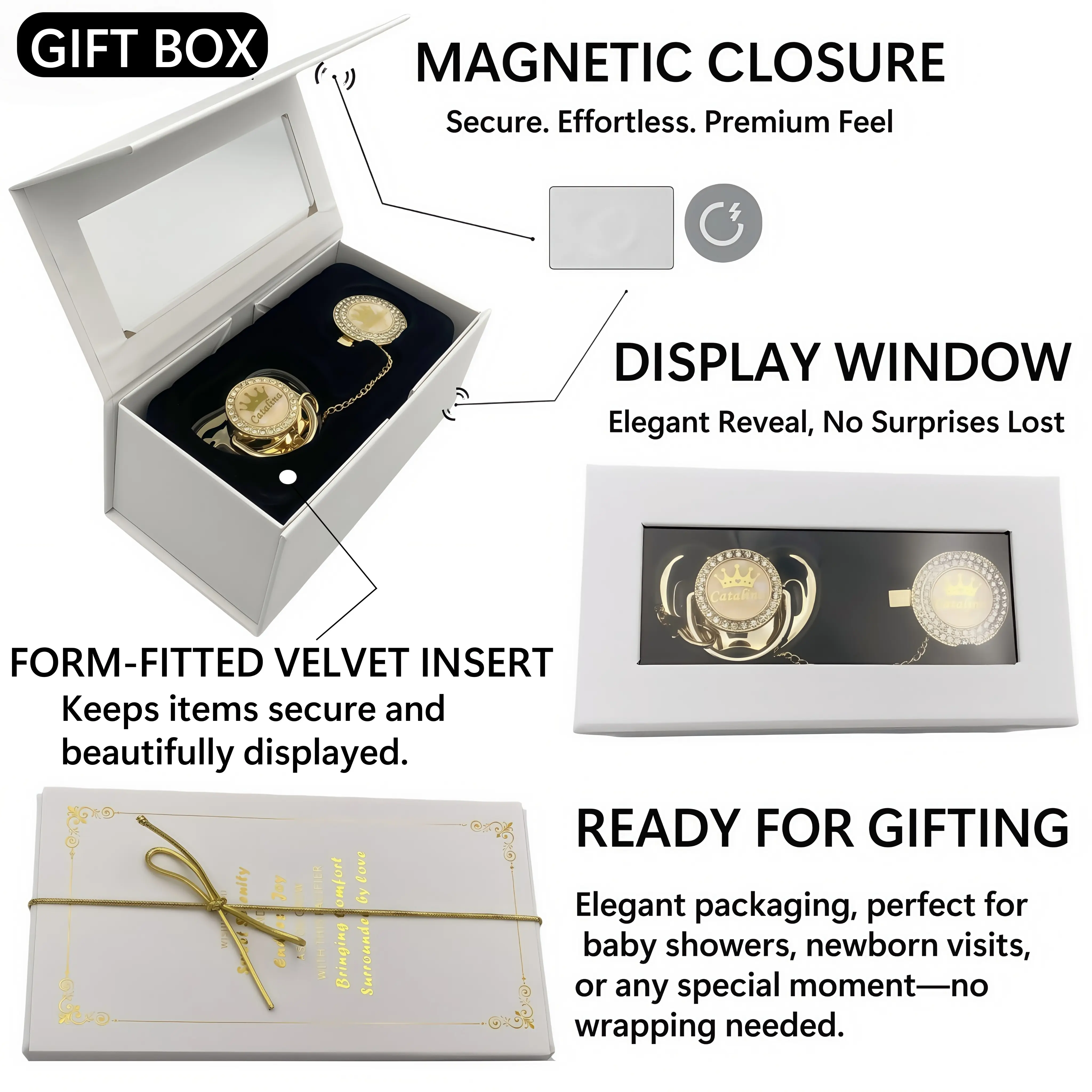 Crafted with baby-safe, BPA-free materials, this luxurious set is both stylish and functional — a beautiful gift for every little star 🌟