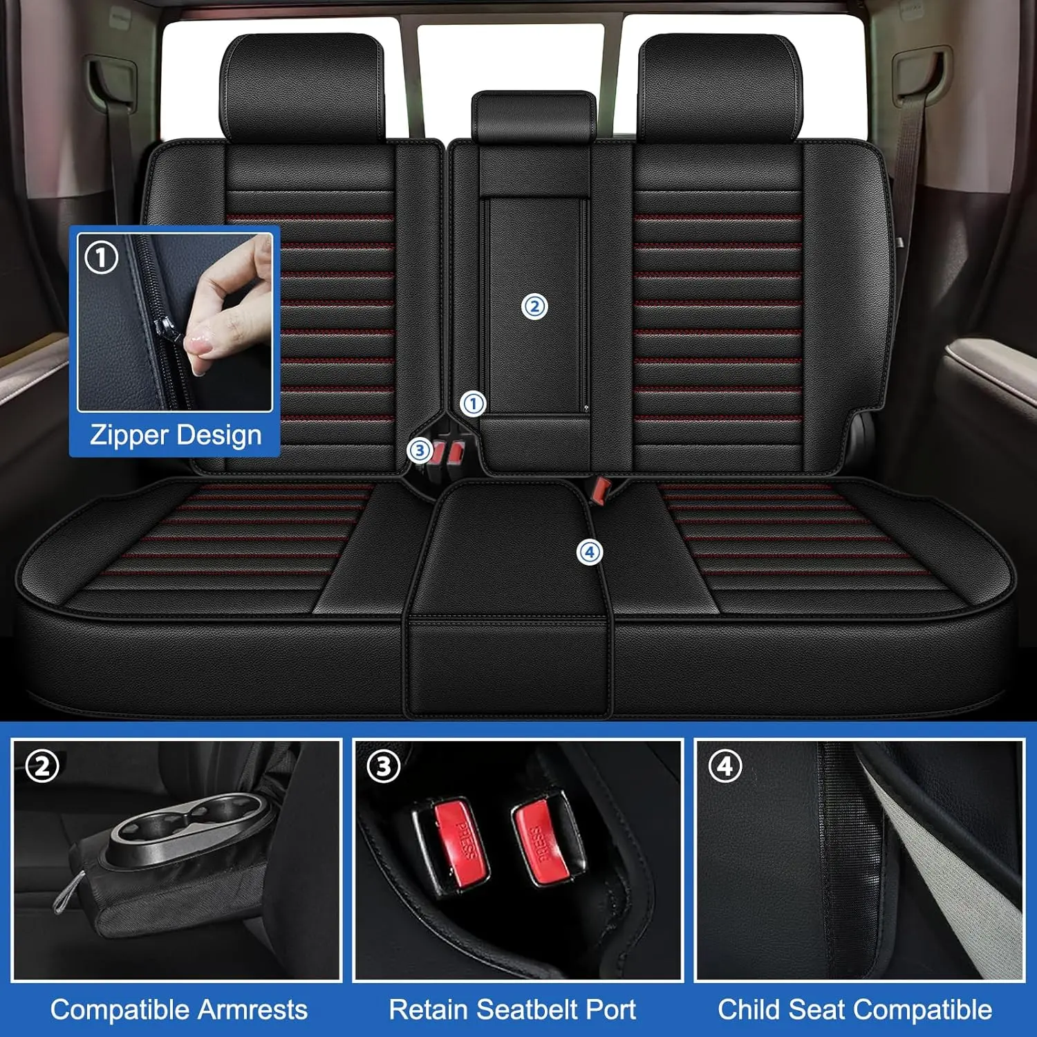 • 【Function Retention】These full-coverage seat covers are meticulously tailored to the original seat sizes, maintaining full functionality,including airbags, seatbelts and seat adjustments.The small cup holder part of the rear seat cover can be used by opening the small cup holder with the zipper.