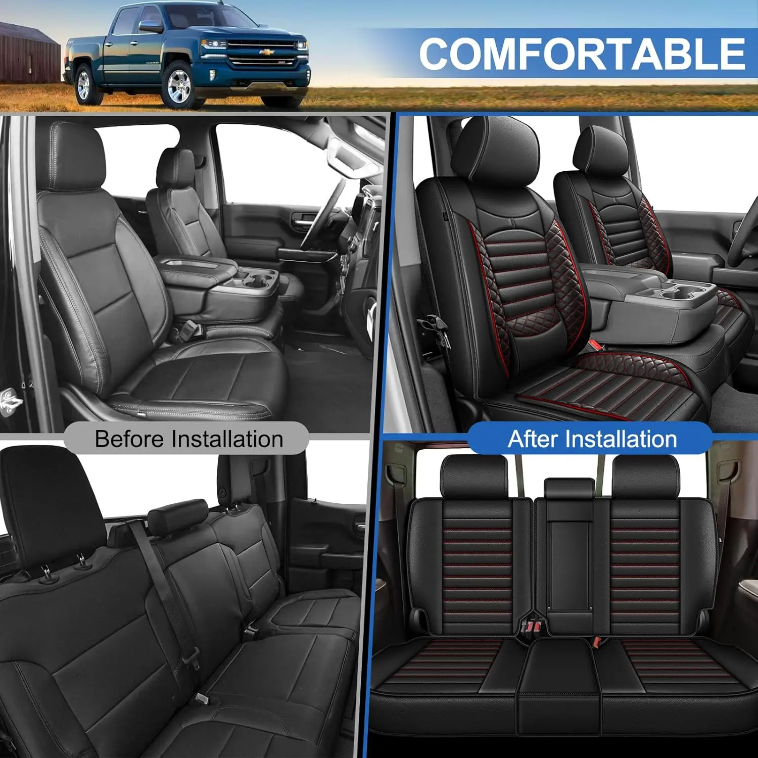 •【Well Fit】seat covers full set 5 seats are customized designed to fit for Chevy Chevrolet Silverado GMC Sierra Pickup truck 2019 2020 2021 2022 2023 2024 1500 2500HD 3500HD Trail Boss Z71 crew double cab and extended cab, which a perfect fit and maximum comfort.