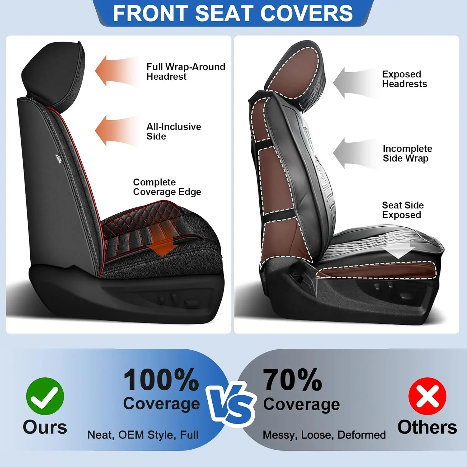 • 【Leather Material】Faux leather seat covers is waterproof and color long-lasting against rain,spills and sweat,so you don't have to worry about water stains and fading.Cleaning is also easy,just wipe off with some detergent and a towel.