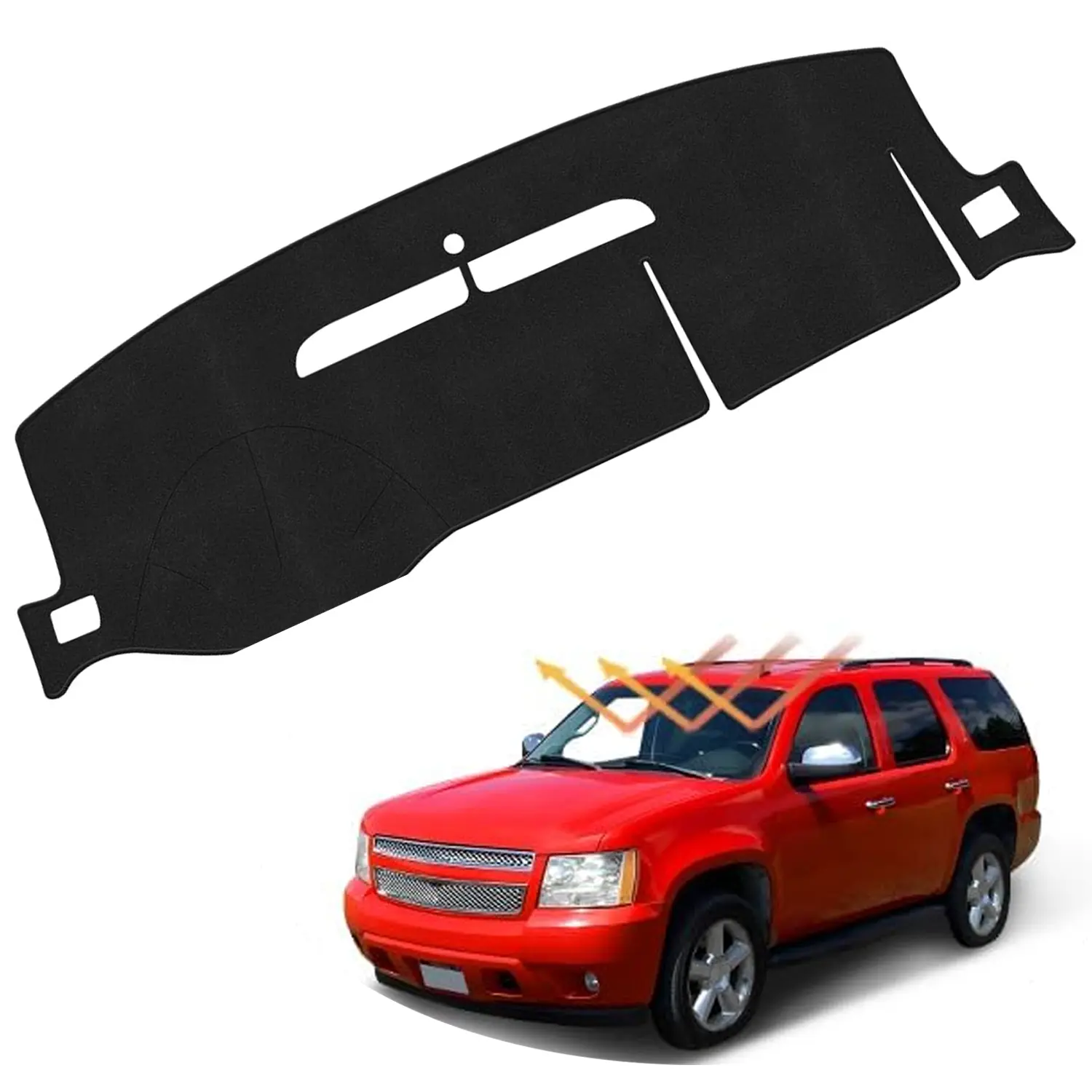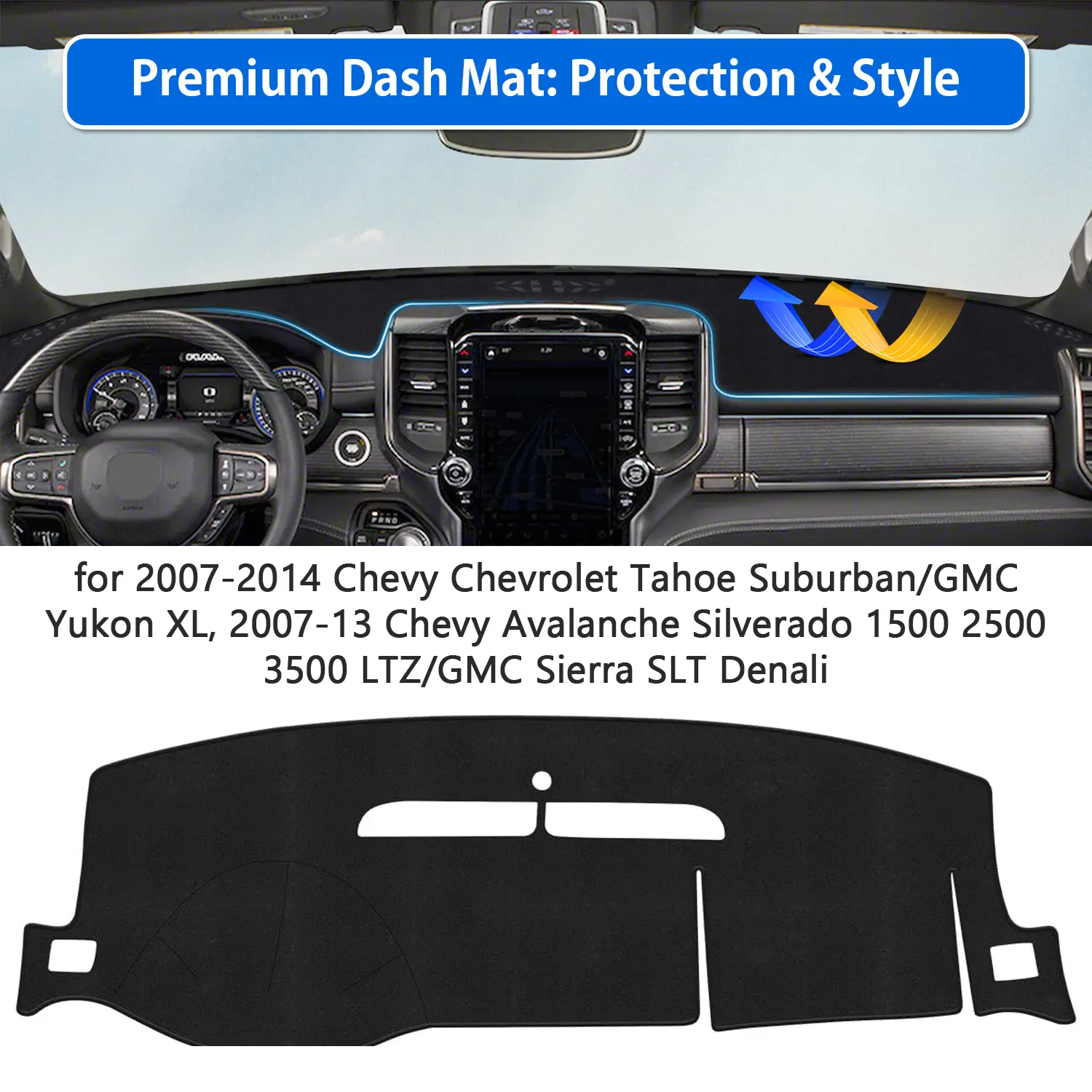 Elevate your dashboard with this custom fit dash mat designed for 2007-2014 Chevy Tahoe, Suburban, GMC Yukon XL, 2007-2013 Silverado Sierra 1500, 2500, 3500, LTZ/GMC Sierra SLT Denali. It offers non-slip protection and UV protection, ensuring your dashboard stays safe and stylish. This anti-glare polyester cover is tailored to fit various models perfectly.