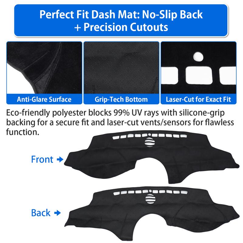 This dash cover cools your vehicle's interior by blocking sunlight, protecting against summer heat and winter cold. It reduces glare, increasing driving safety. Keep your dashboard in pristine condition with this protective cover.