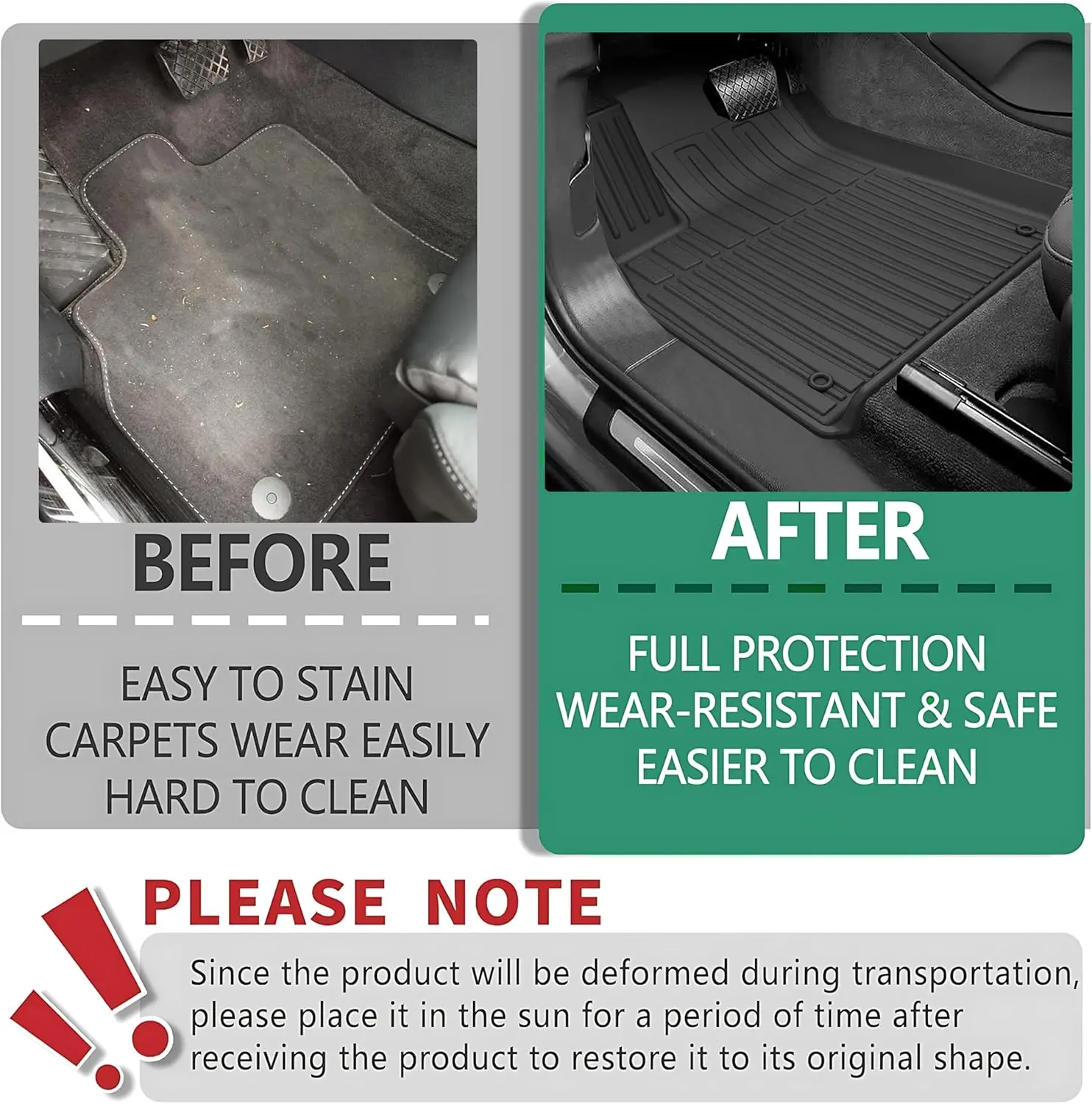 Premium TPE Material - All the floor mats and trunk liner are made of high-quality TPE eco-friendly material, non-toxic and tasteless. It will not produce unpleasant odors in your driving space, and it is safe and harmless to the health of you and your family.