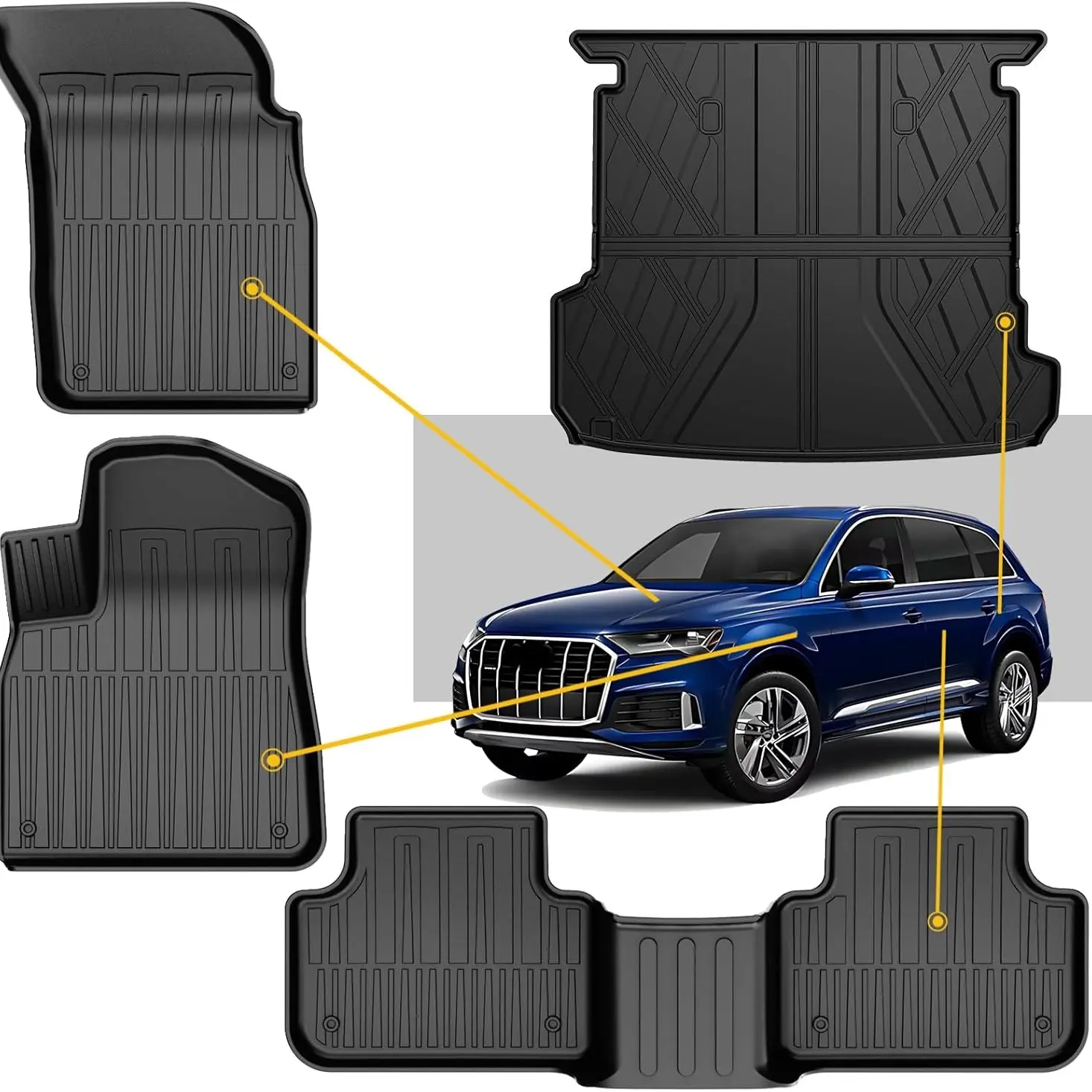 CUSTOM FIT Audi Q7/SQ7 - IKABEVEM floor mats and trunk mat custom fit for 2017-2025 Audi Q7/SQ7 All Models. Custom fit design edge to edge for maximum coverage and protection with TPE (thermoplastic elastomer) material which ensures your more strength, resilience, durability and elasticity.