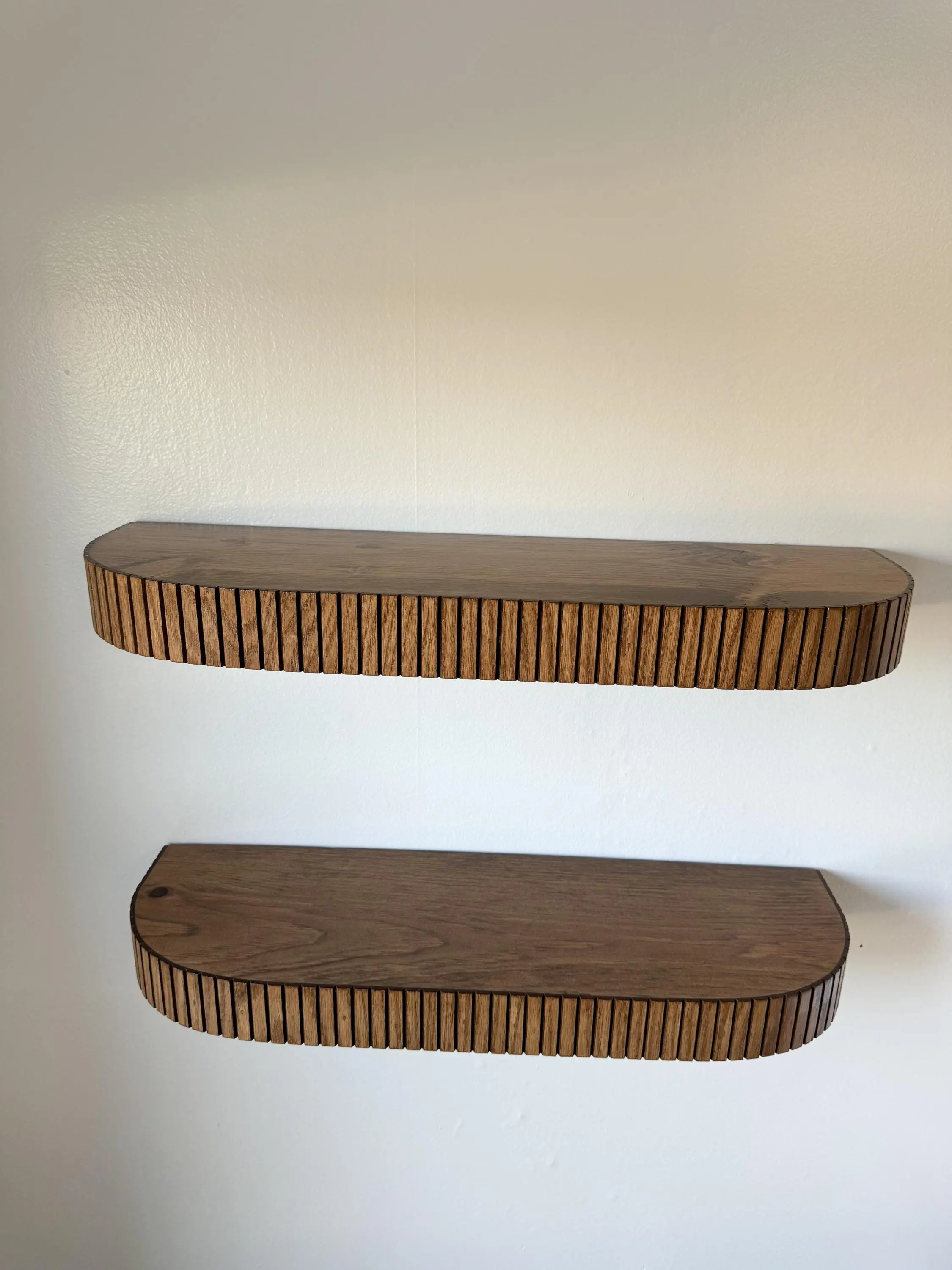 Hand-finished to perfection, our floating shelves offer durability and style in equal measure. The ridged detail along the edges adds a subtle texture, giving them a unique character.