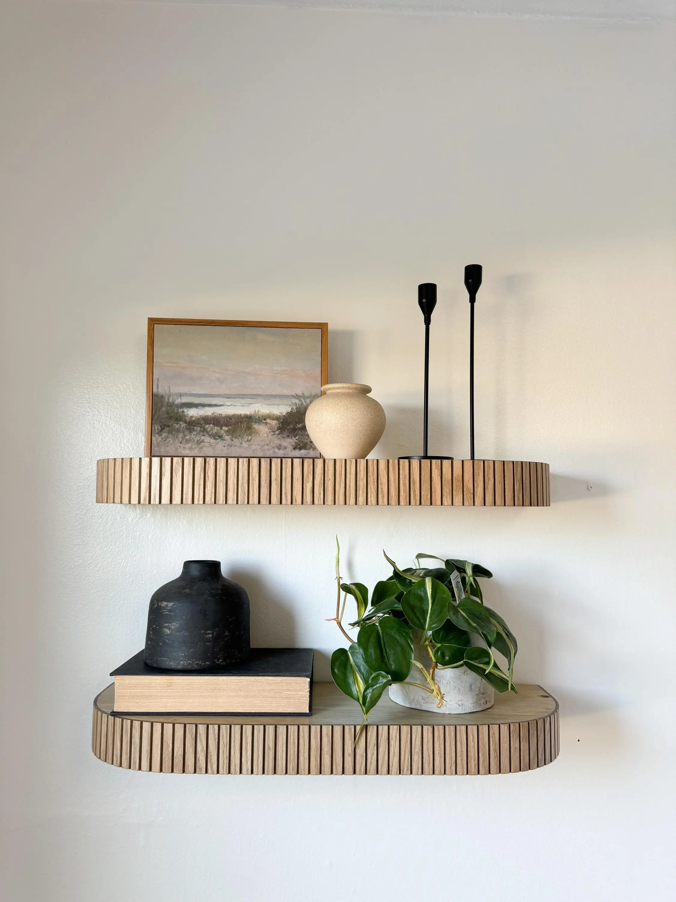 Introducing our custom floating shelves, where craftsmanship meets design. Each shelf is thoughtfully created with high-quality, sustainable wood and features sleek, minimalist lines that elevate any space. Perfect for displaying plants, decorative pieces, or functional storage, our shelves blend seamlessly into both modern and rustic aesthetics.