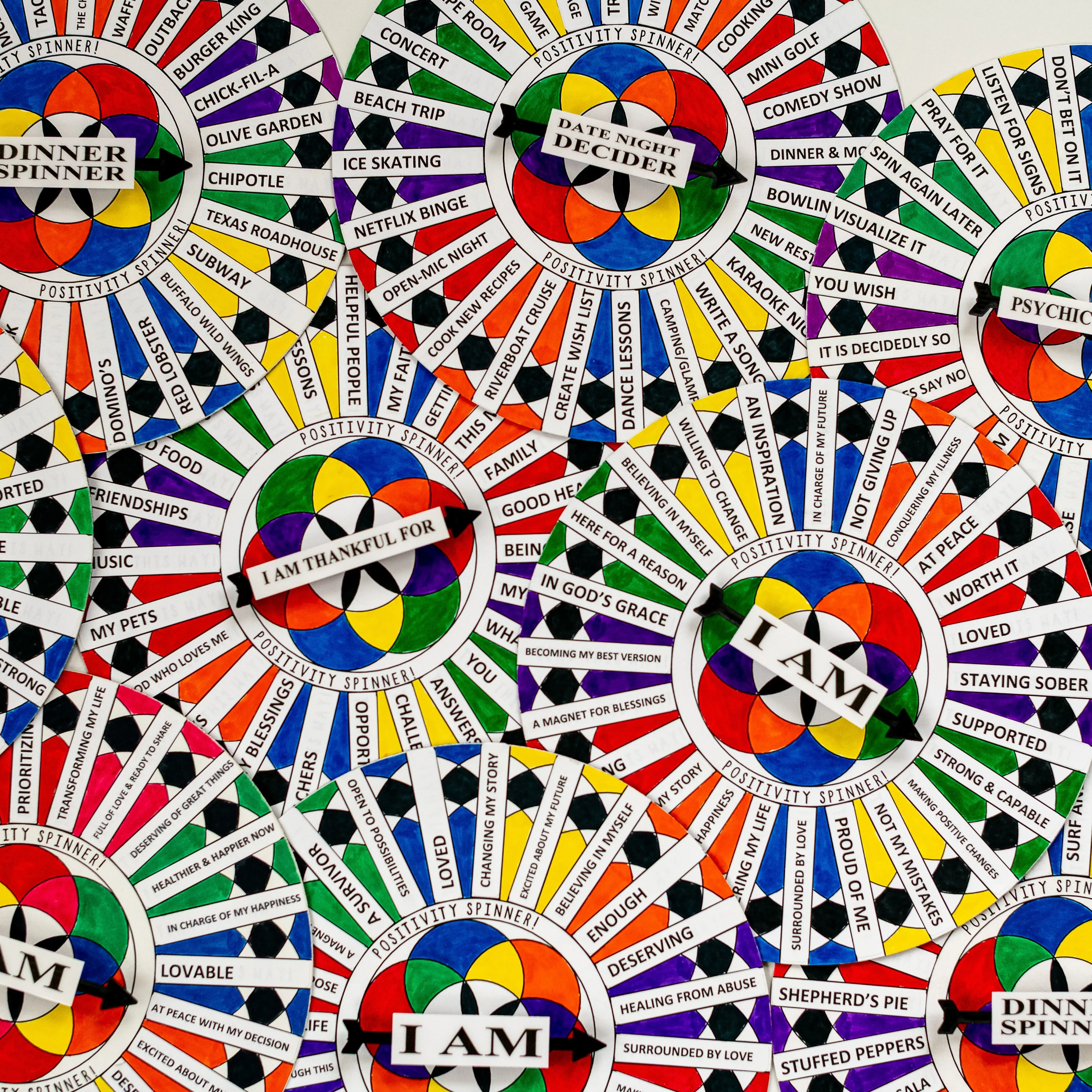 ·Personalized Affirmations: A spinner with your favorite "I AM" statements, personal mantras, or words of encouragement.