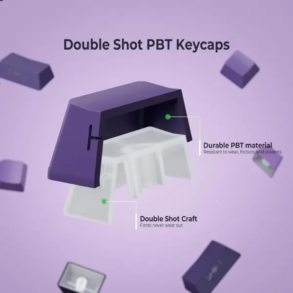 These PBT keycaps are made of textured, high-grade PBT and are resistant to wear, friction, and solvents. Ensure a better user experience.