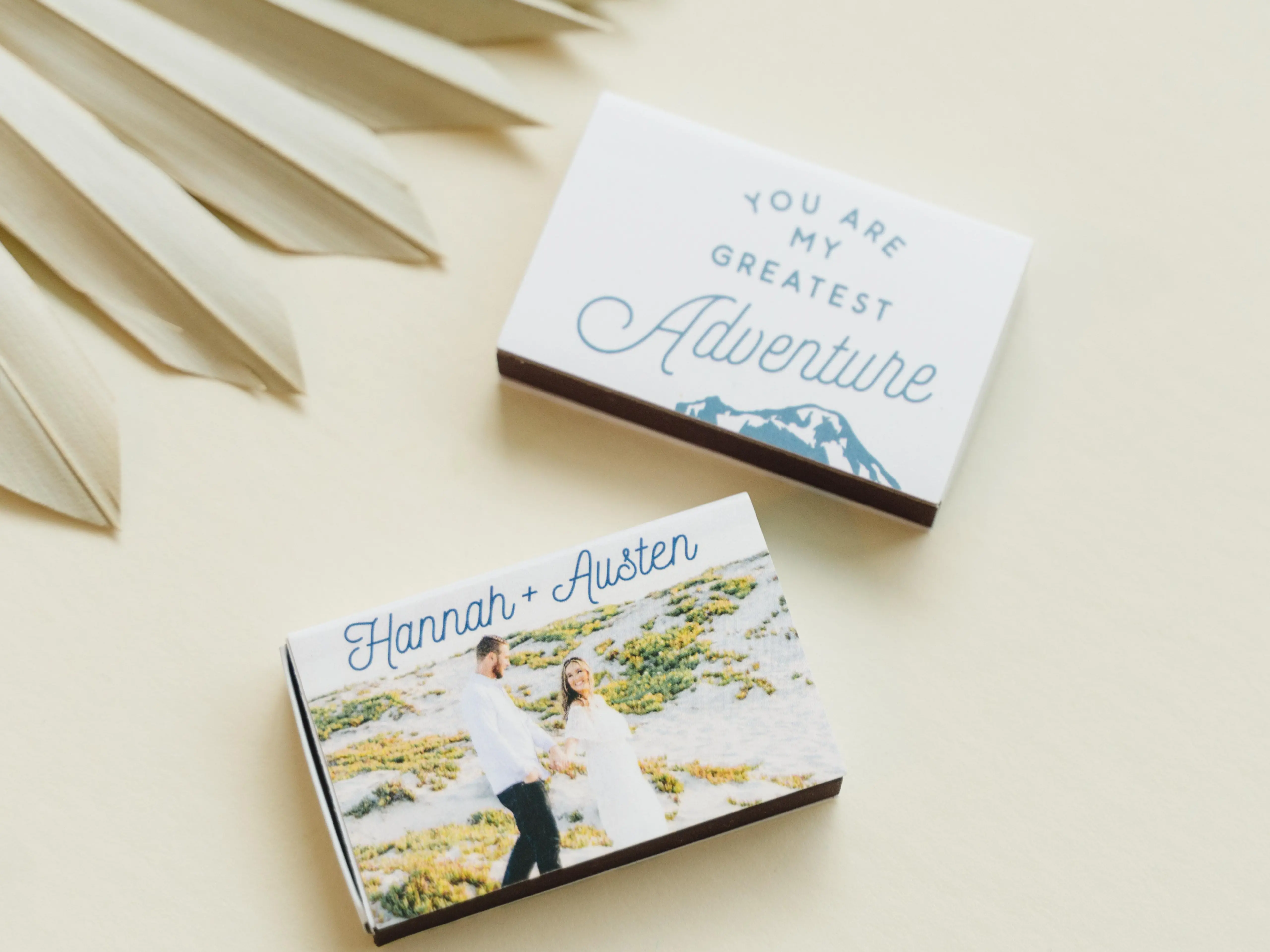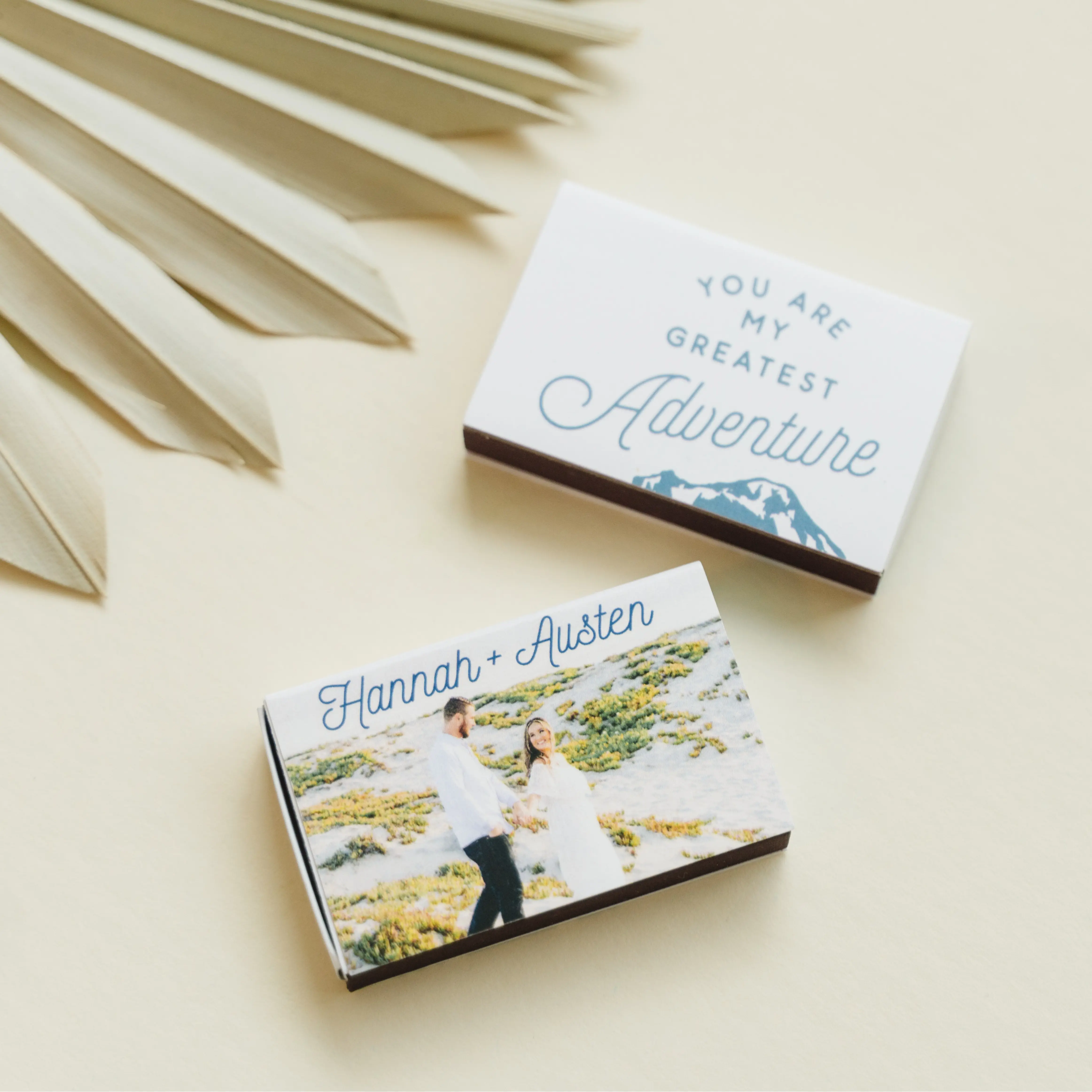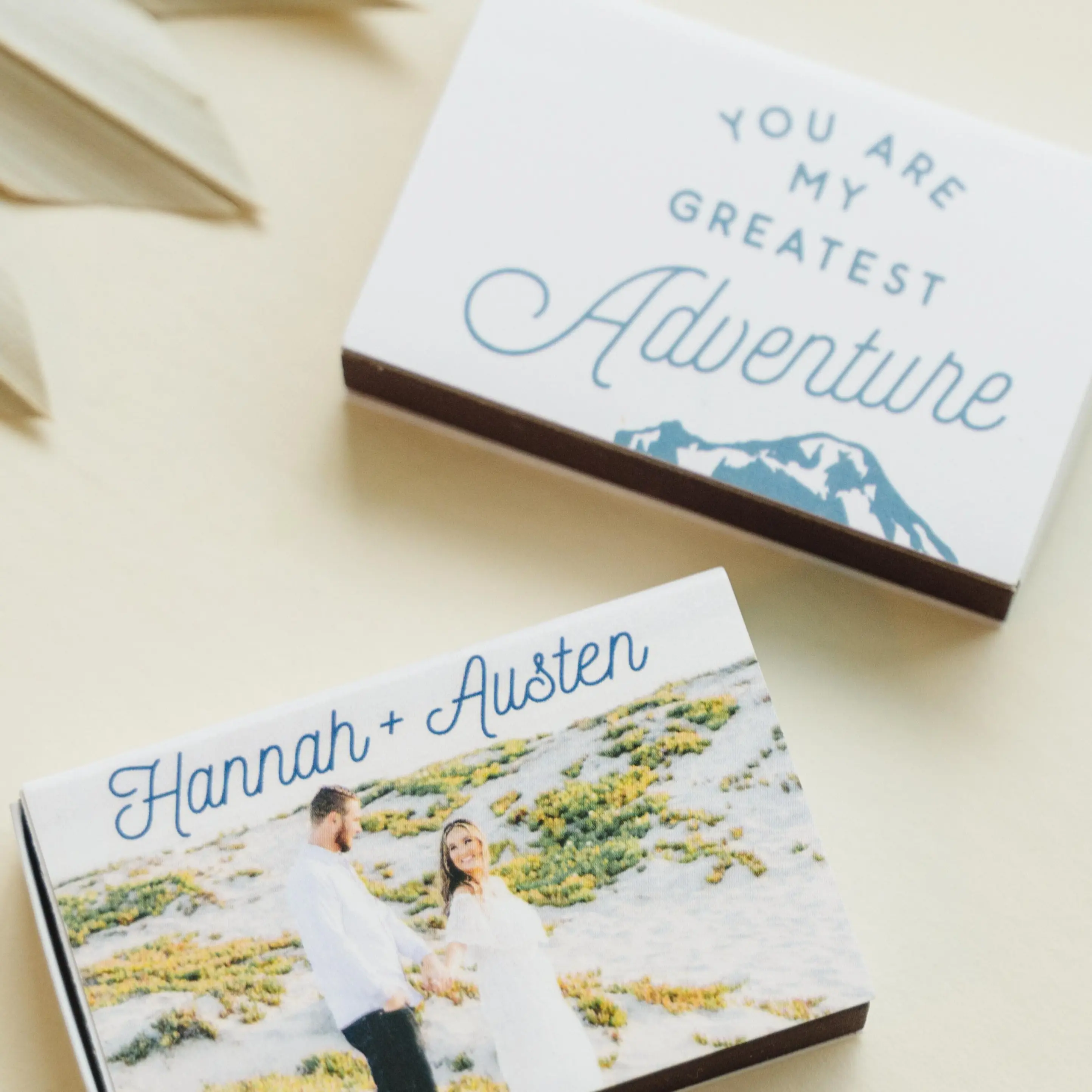Custom White Classic Custom Photo Matchbox with Matte Ivory Ink Digital Print Colors and Matte Stone Blue Ink Digital Print Colors has a Greatest Adventure graphic and is good for use in Wedding, Travel, Words themed parties and will look fabulous with your unique touch. Your guests will agree! Set of 50. Greatest Adventure Custom Photo Match - Matte Ivory - Classic Matchbox - Personalized - Set of 50 - 2.22 x 1.375" by For Your Party