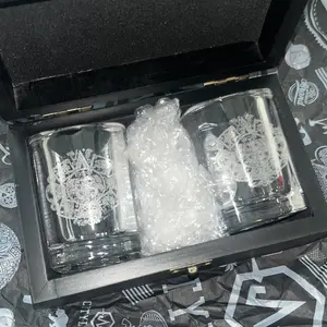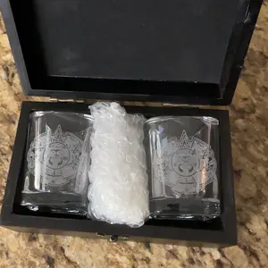 I ordered 2 tequila shot glasses with custom boxes as gifts. My compadre loved them. They were delivered really quick. I definitely recommend it to my friends.