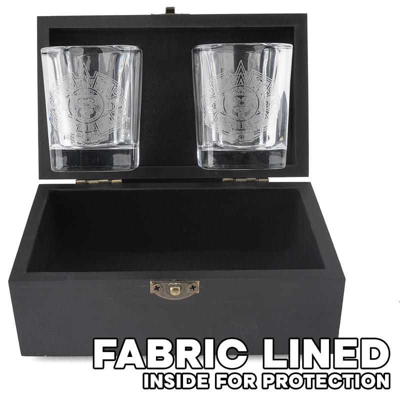 Excellently crafted case, glasses are just the right size and the etching is phenomenal. The only complaint I have is the lack of an integrated cushion between the two glasses in the case; have to re-insert the bubble wrap each time.