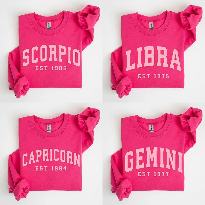 5. (Leave A Note or DM our Shop) Custom Year, Custom Zodiac Sweatshirt – Pink Color, Est Your Year Astrology Pullover, Cute Horoscope Energy Gift, Unisex Crewneck Sweatshirt, Birthday Zodiac Sign Outfit 2026 - LORA ATCHER