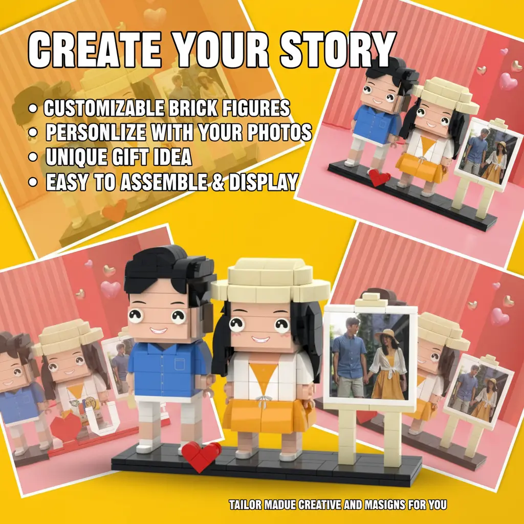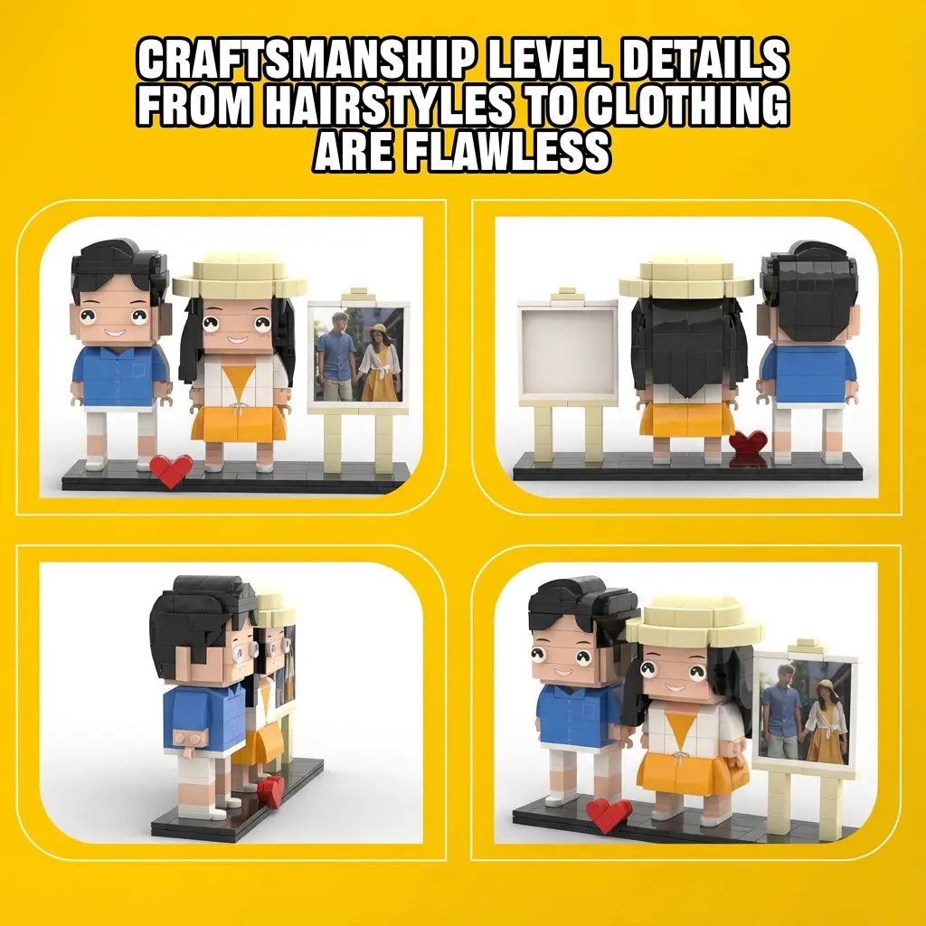 Send a clear couple photo to customer service. We draft a 3D preview for confirmation. Design cannot be modified once confirmed. Get your personalized brick set in a few steps!