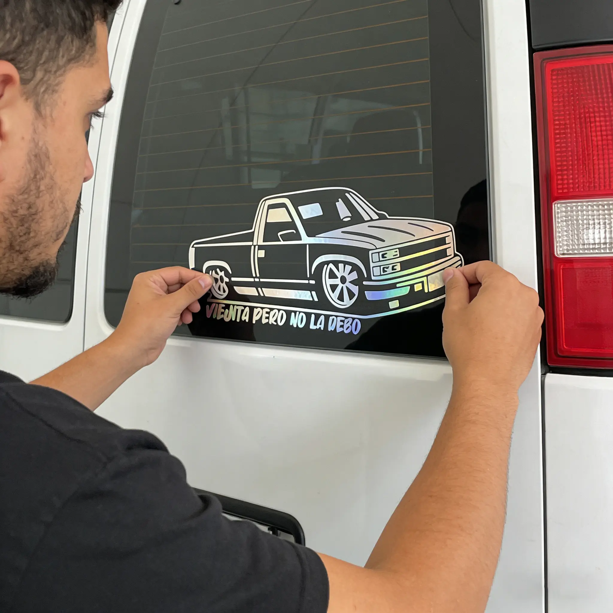 Perfect for truck lovers and low-rider fans! This decal sticker adds style to your vehicle or space. Ideal for cars, trucks, SUVs, glass doors, windows, and fridges. Available in white or red. Represent your style with this durable, weather-resistant decal.