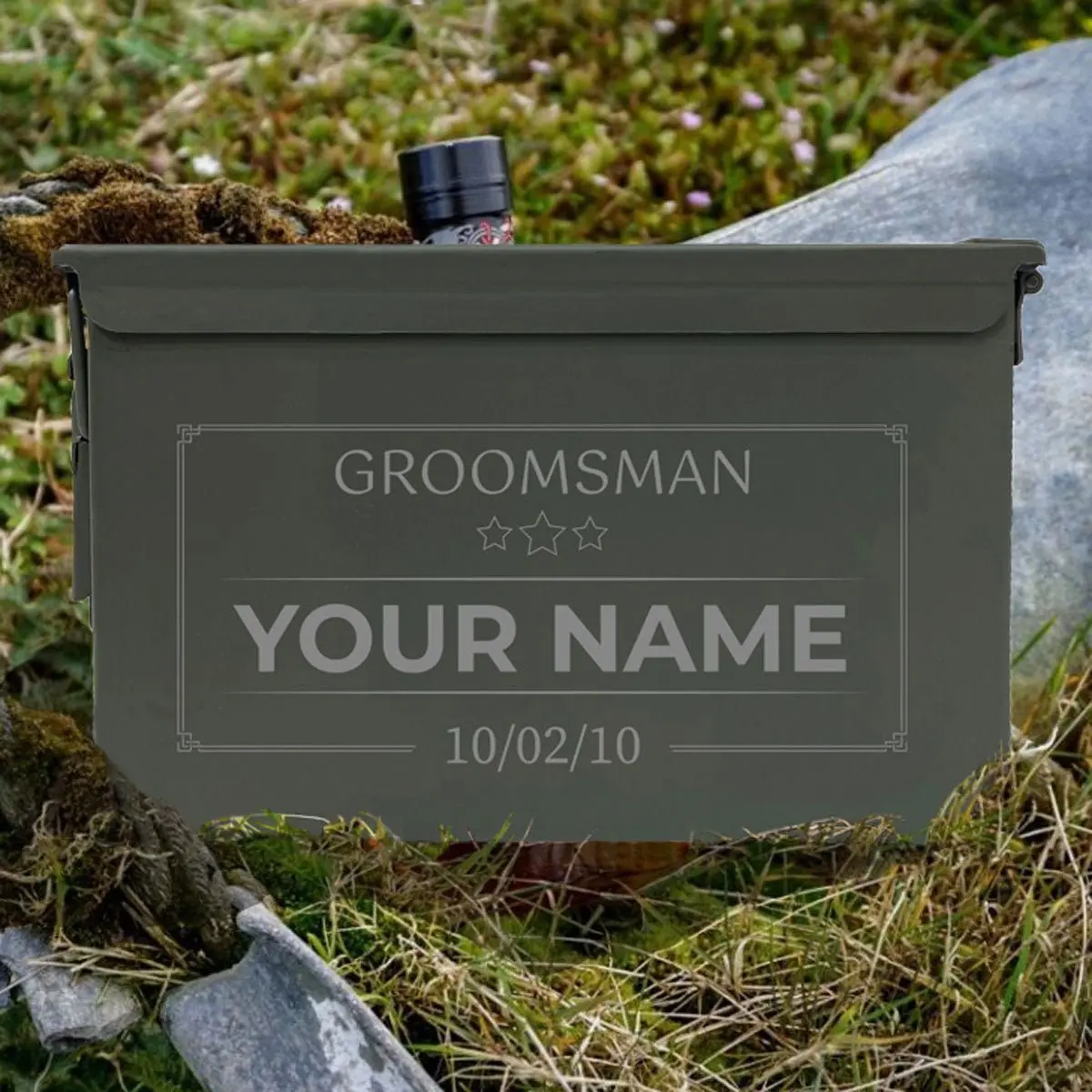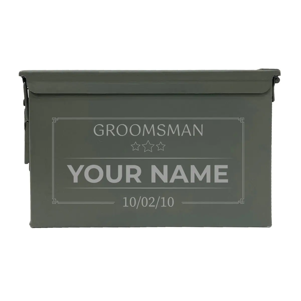Laser Engraved - GROOMSMAN STARS - [YOUR NAME] Grade 1 Ammo Cans - 30 Cal, 50 Cal or Fat 50