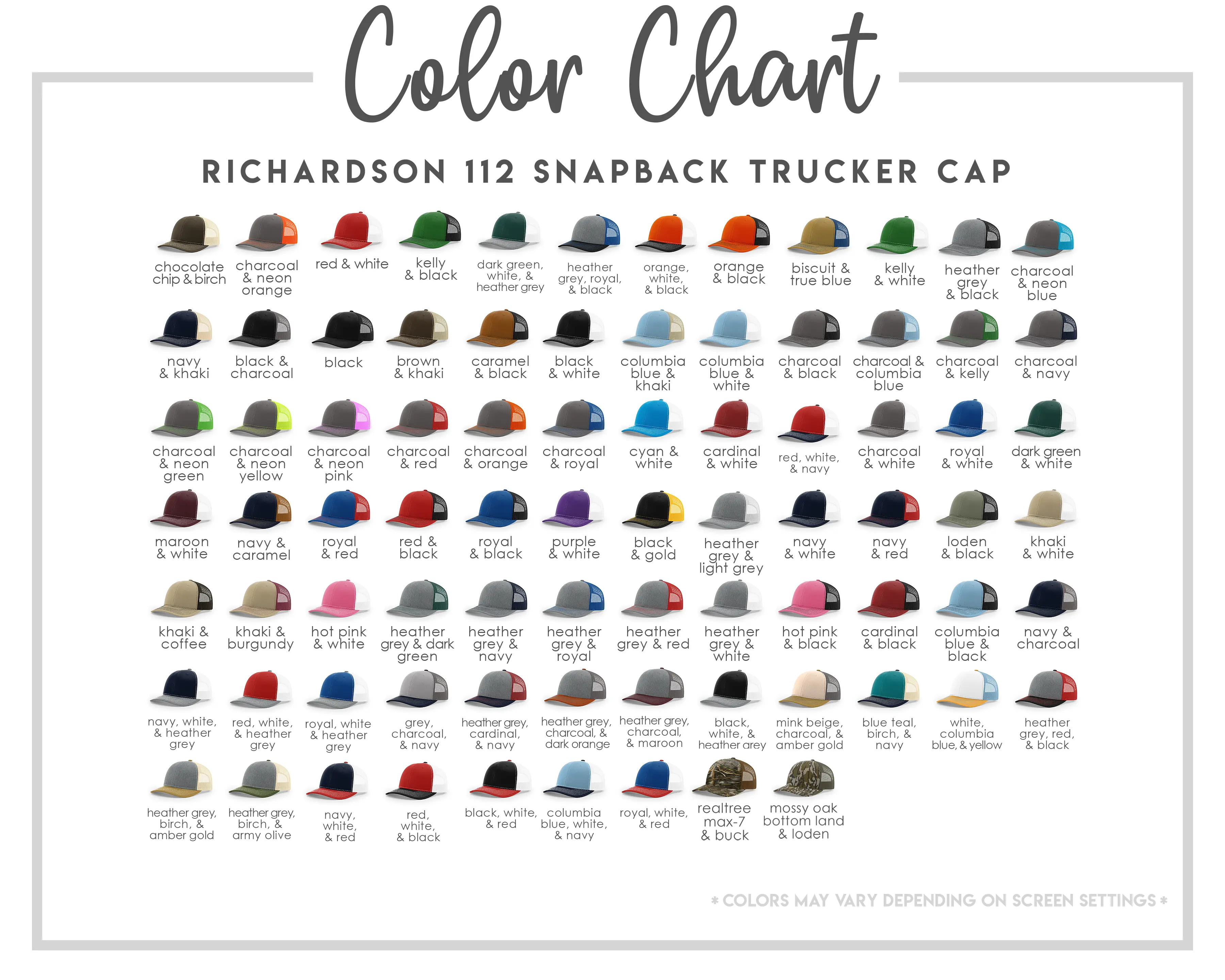• Enter Hat Style/Color in CART NOTES if you don't see color listed in drop down menu