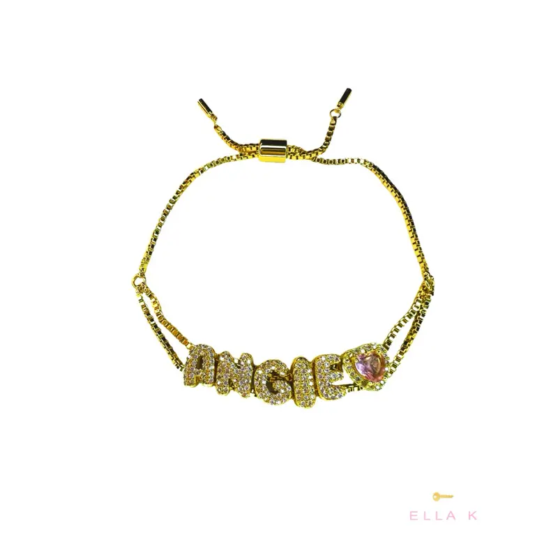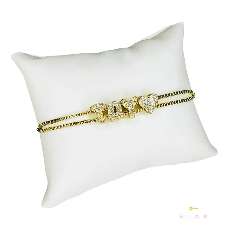 Please use the red heart emoji if you want a the pavé heart & the pink heart emoji if you want the light pink heart stone. Only 1 heart per bracelet. Max 7 characters.