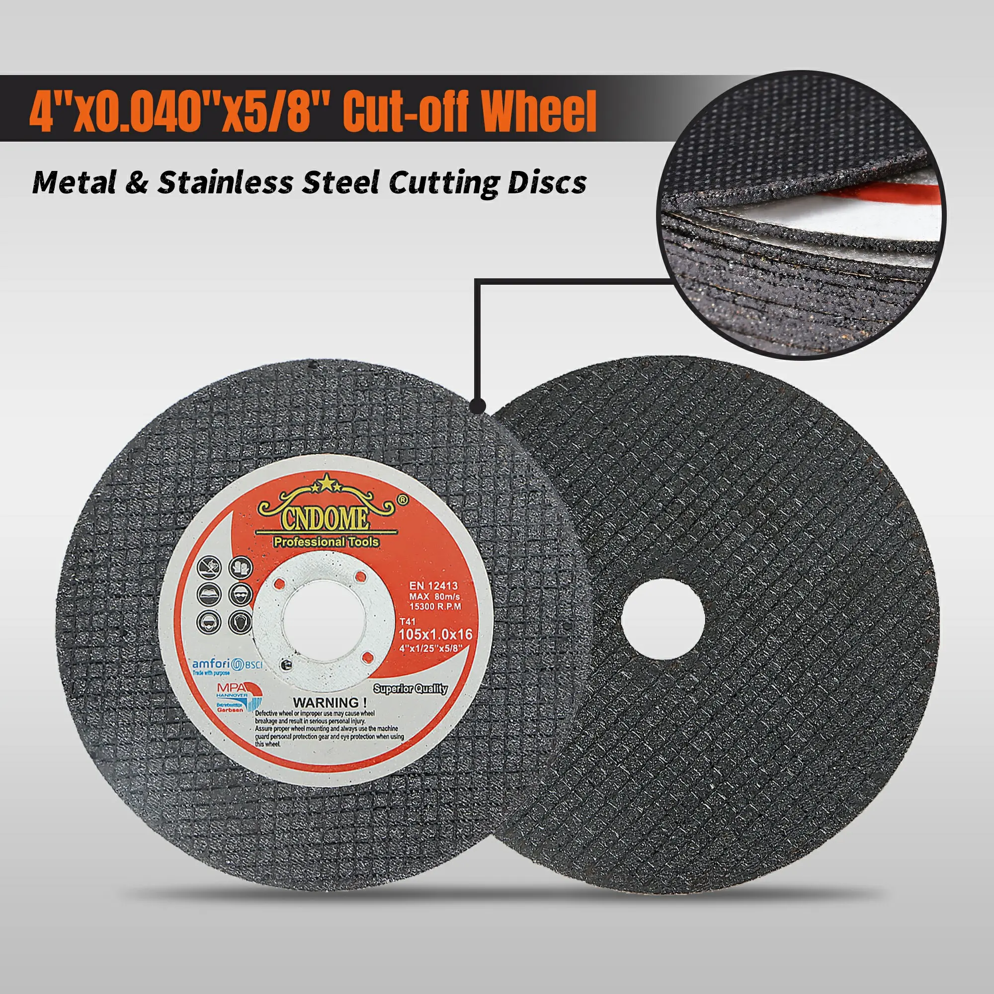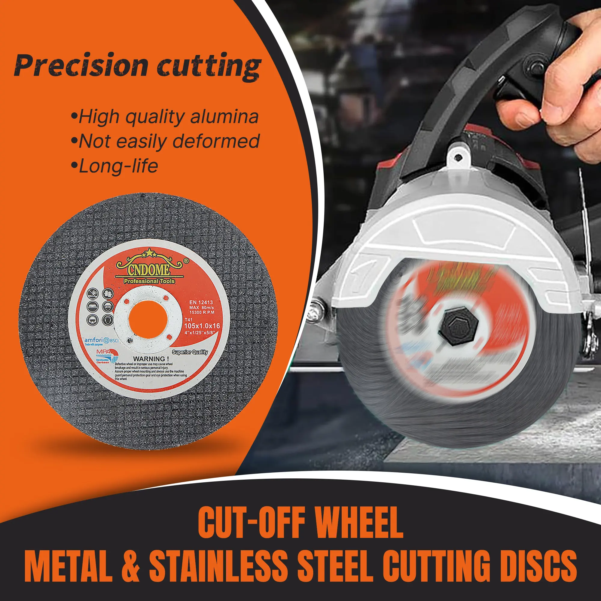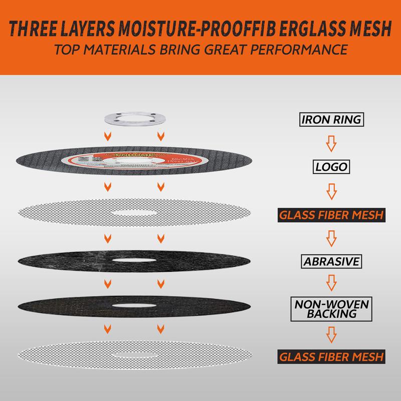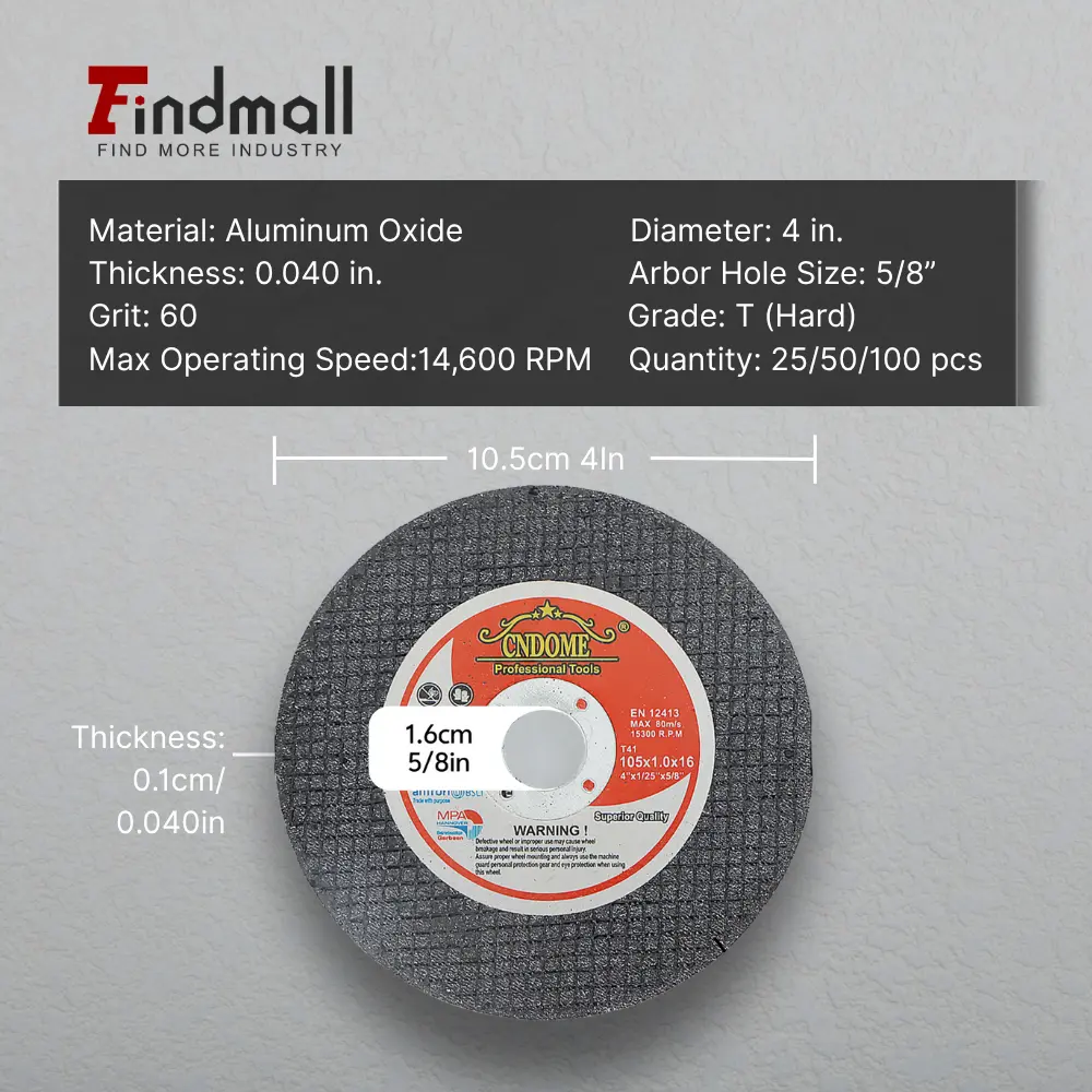 The cut-oof wheel is made of exclusive top-grade raw materials and 0.04in/0.045in/0.0625in ultra-thin thickness, it can be lessing rework and higher efficiency. They are designed for fast cutting action and long life.