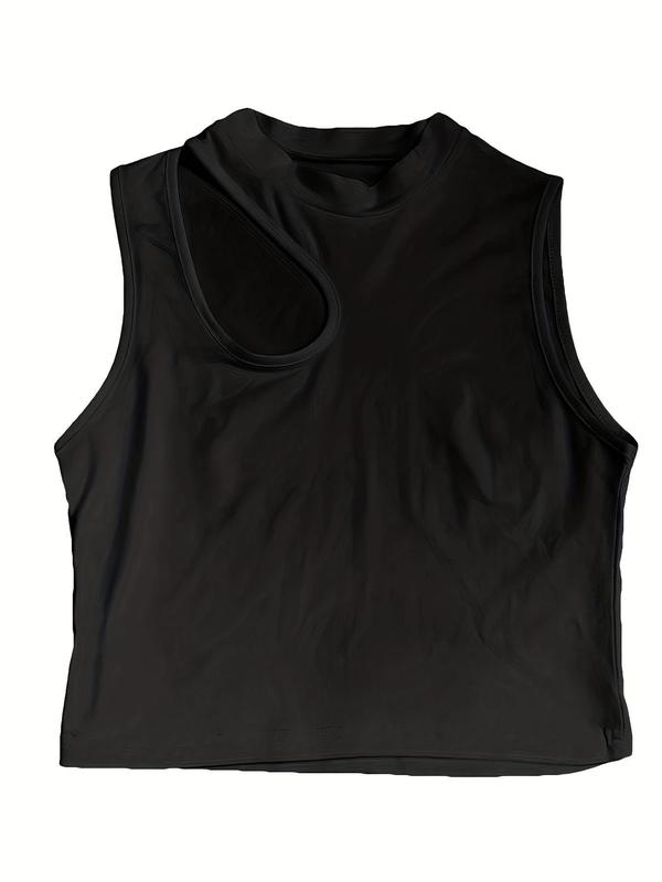 Women's Solid Color Cut Out Mock Neck Tank Top, Casual Sleeveless Top for Summer, Ladies Clothes for Daily Wear