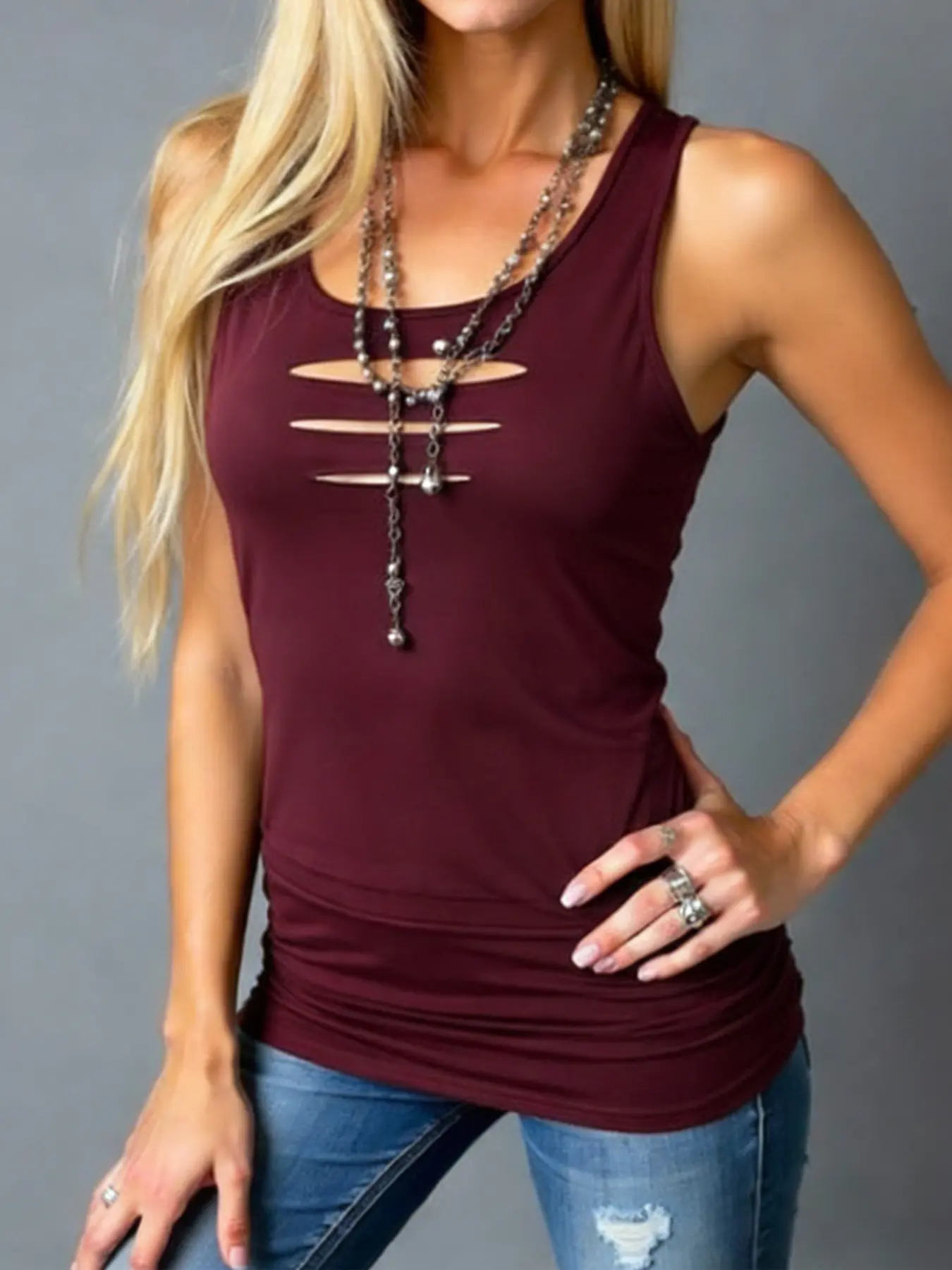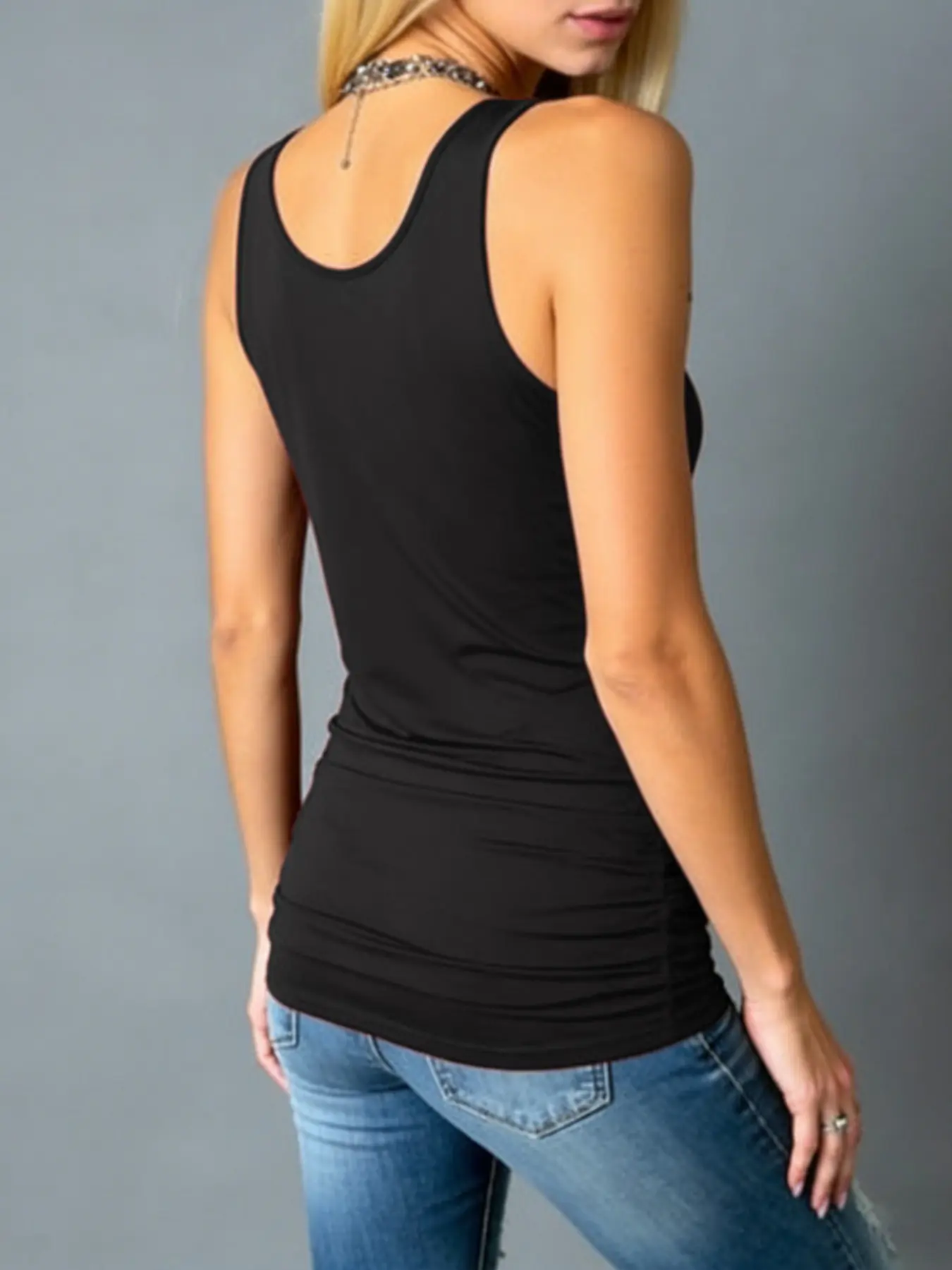 Super cute tank. I paired it with my dark denim jacket jeans and black wedges today and it was cute! Love it!