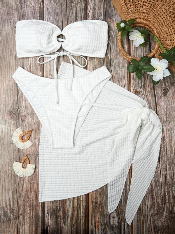【Three-piece set】: Includes a bikini top, knot side skirt, and high cut panty, providing versatility for beach outings and swim parties.