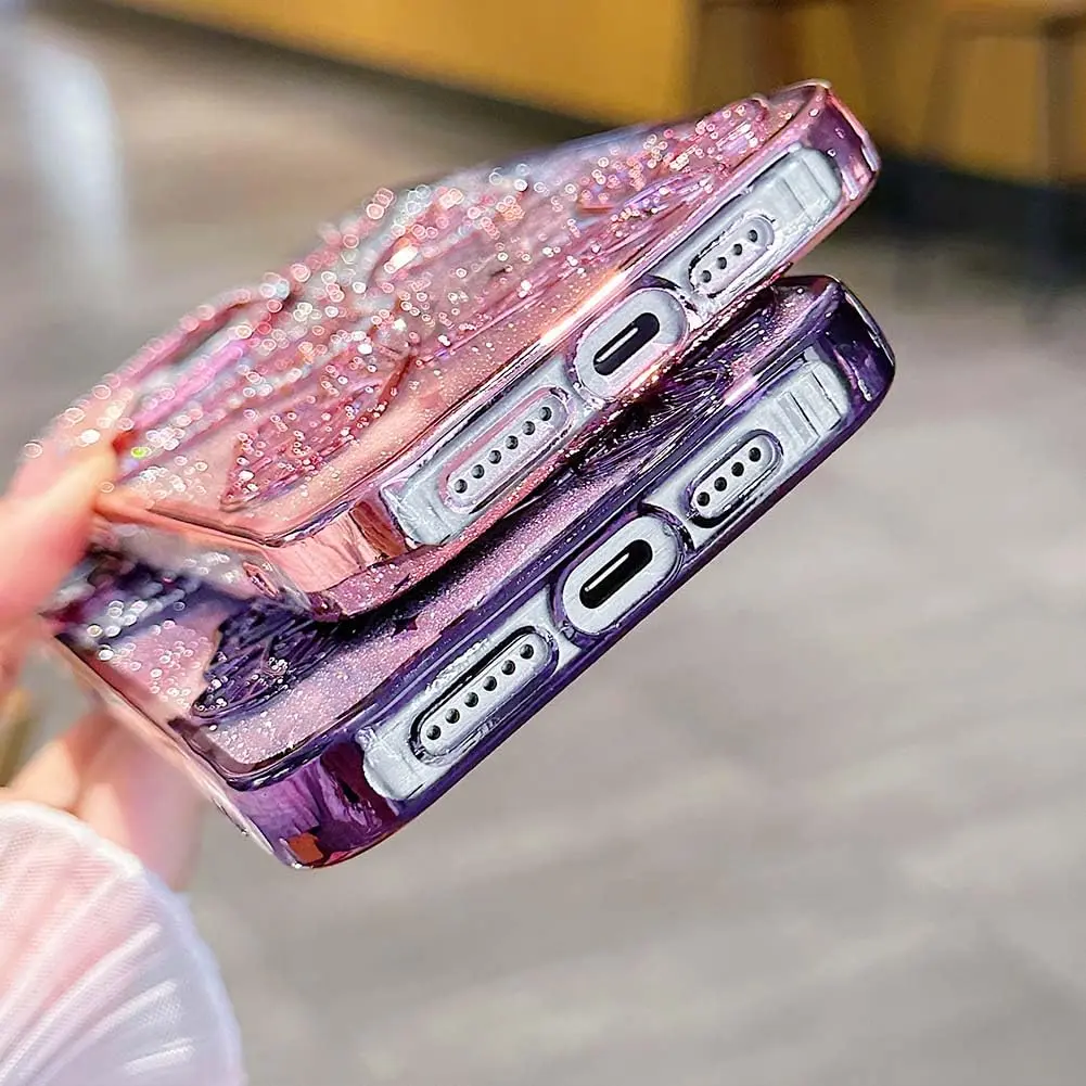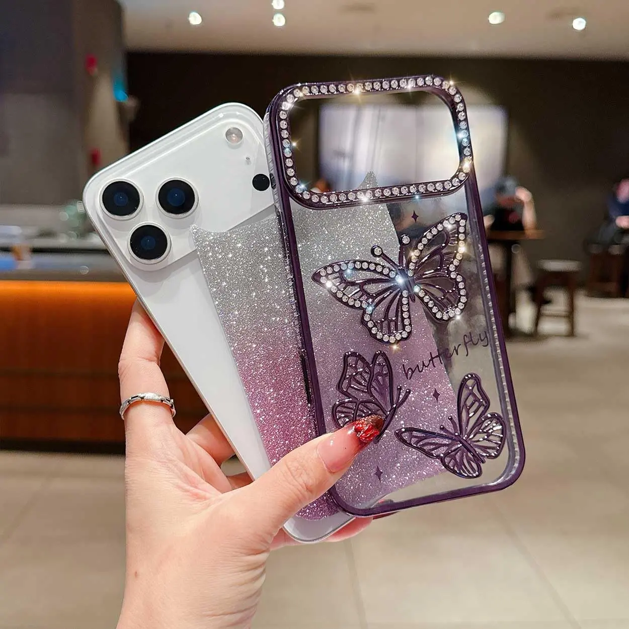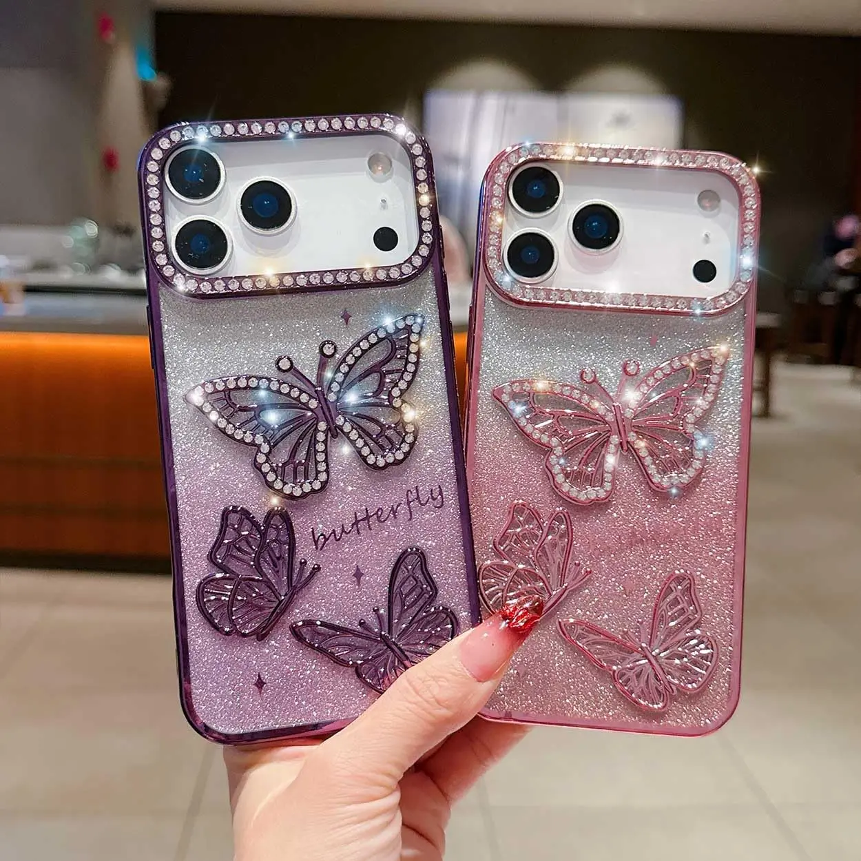 Cute 3D Butterfly Slim Plating Glitter Bling Luxury Cover for Women Girls Protective Camera Protection Bumper,