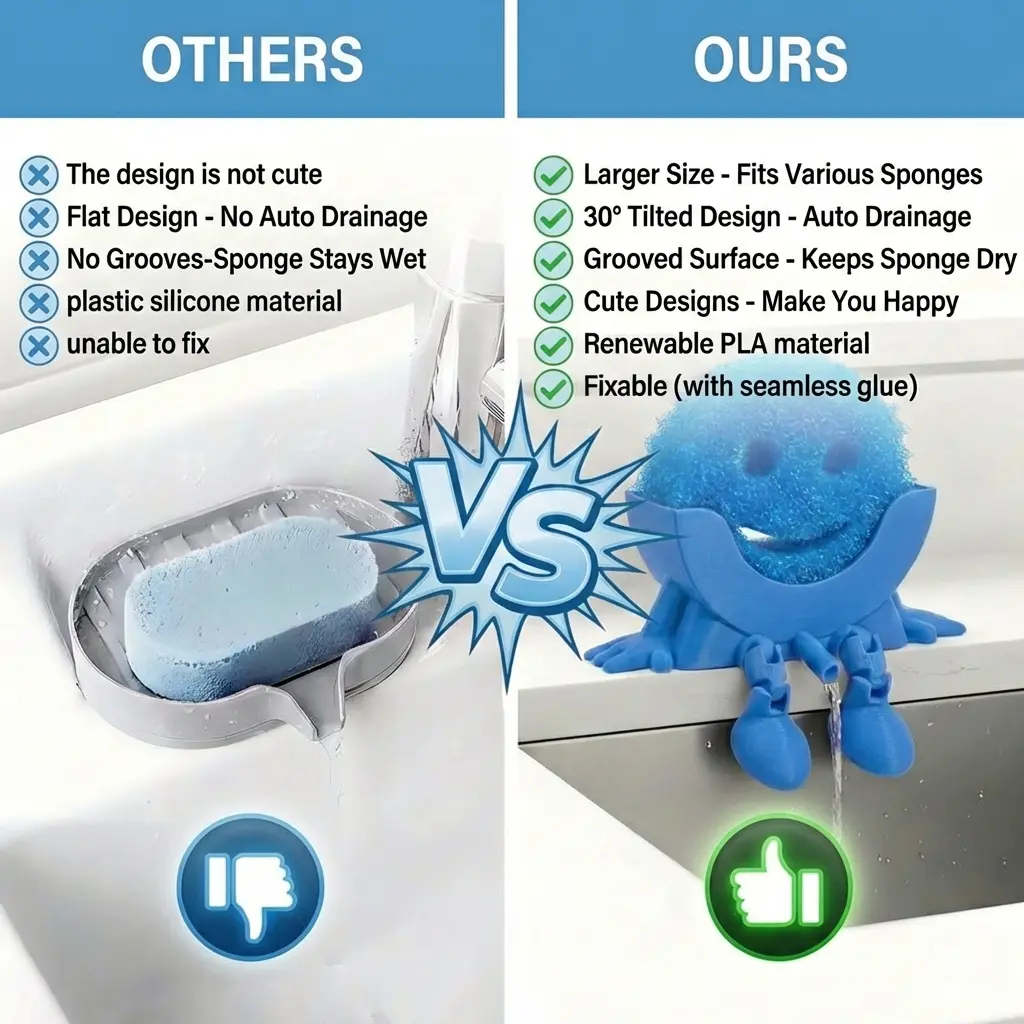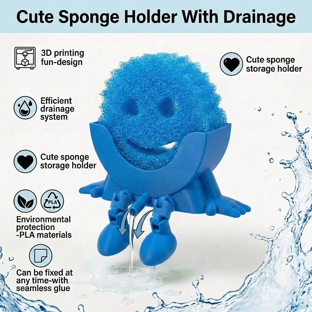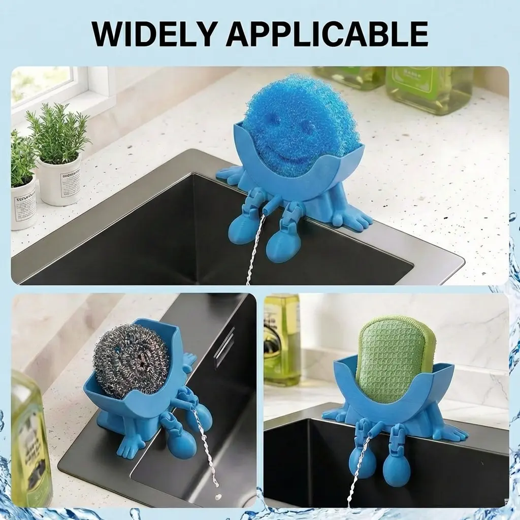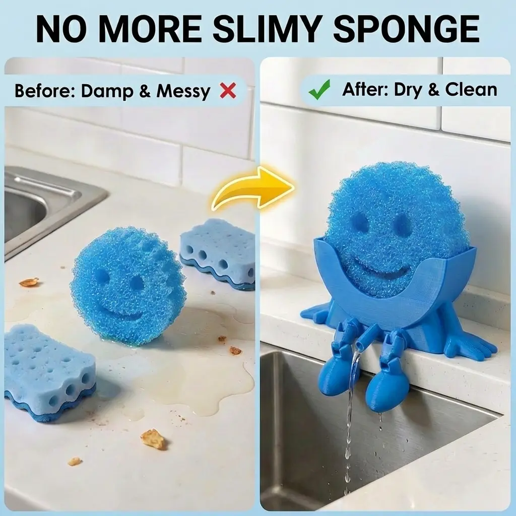 Make Your Sink Cute & Organized This adorable 3D-printed character sponge holder adds fun personality to your kitchen while keeping your sink area neat, tidy, and clutter-free. Dishwashing just got happier.