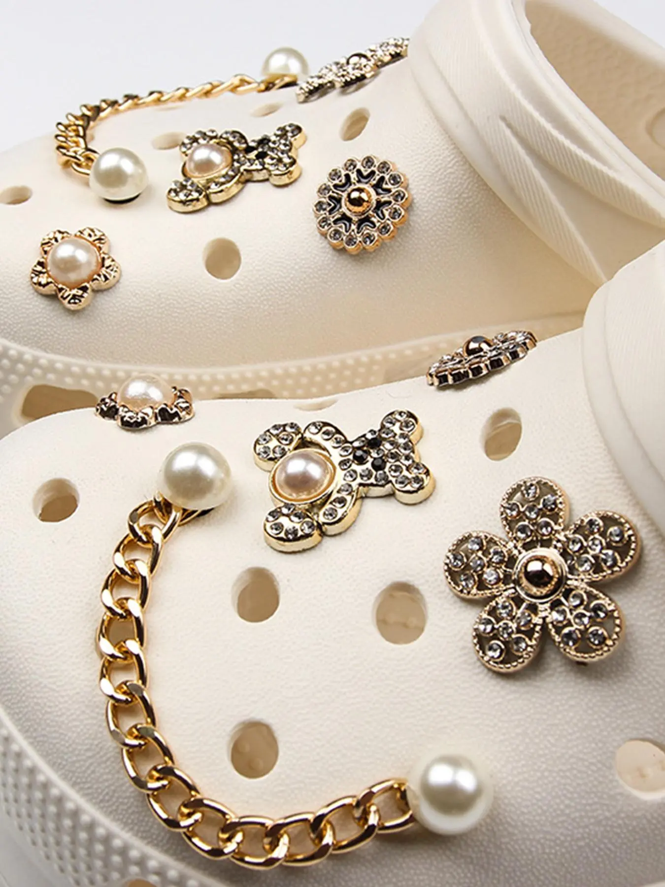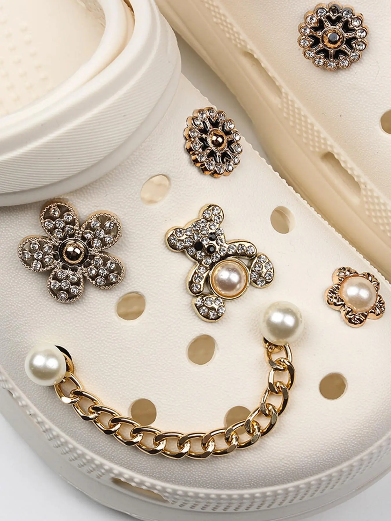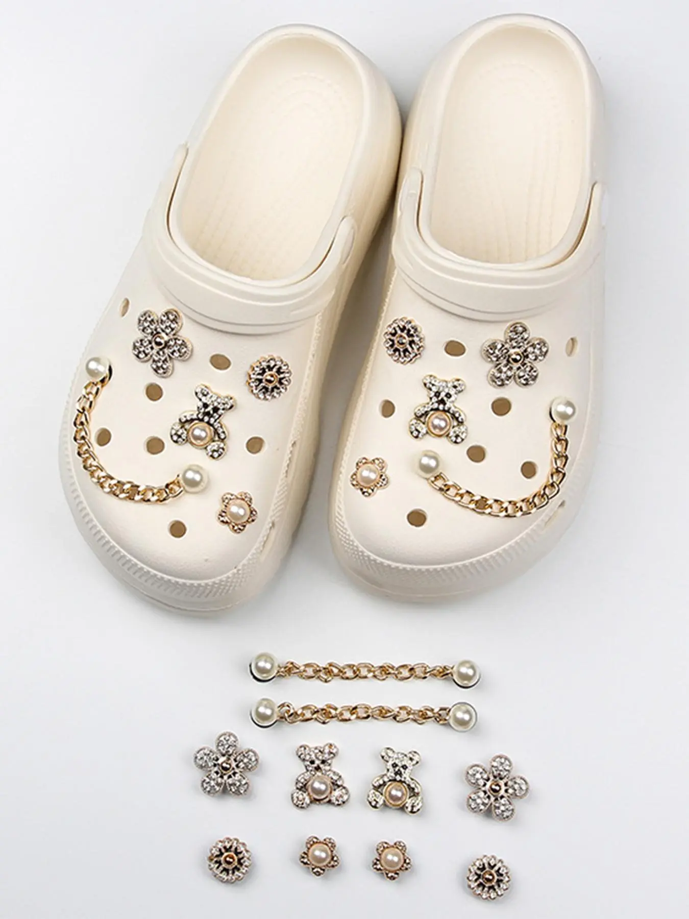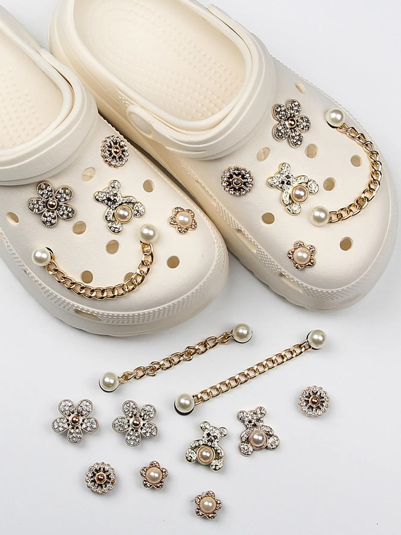 10pcs Cute Bear & Faux Pearl & Rhinestone Design Shoes Decorations, Fashionable Novelty Casual Shoes Decorations For Clogs Design, Dazzling Glamour Trendy Holiday Shoe Accessories for women & girls