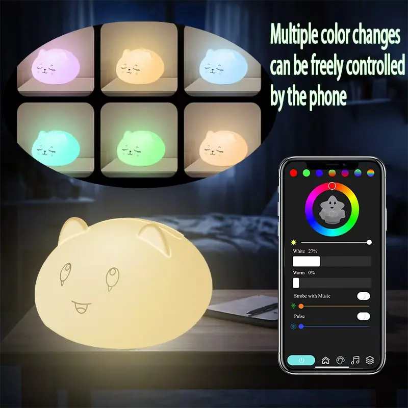 Cute Bluetooth Night Light with App Control - Stepless Dimming, Timer, Colorful Light, Bluetooth Music, Ideal for Sleep & Gift Giving, Perfect for Kids and Bedrooms