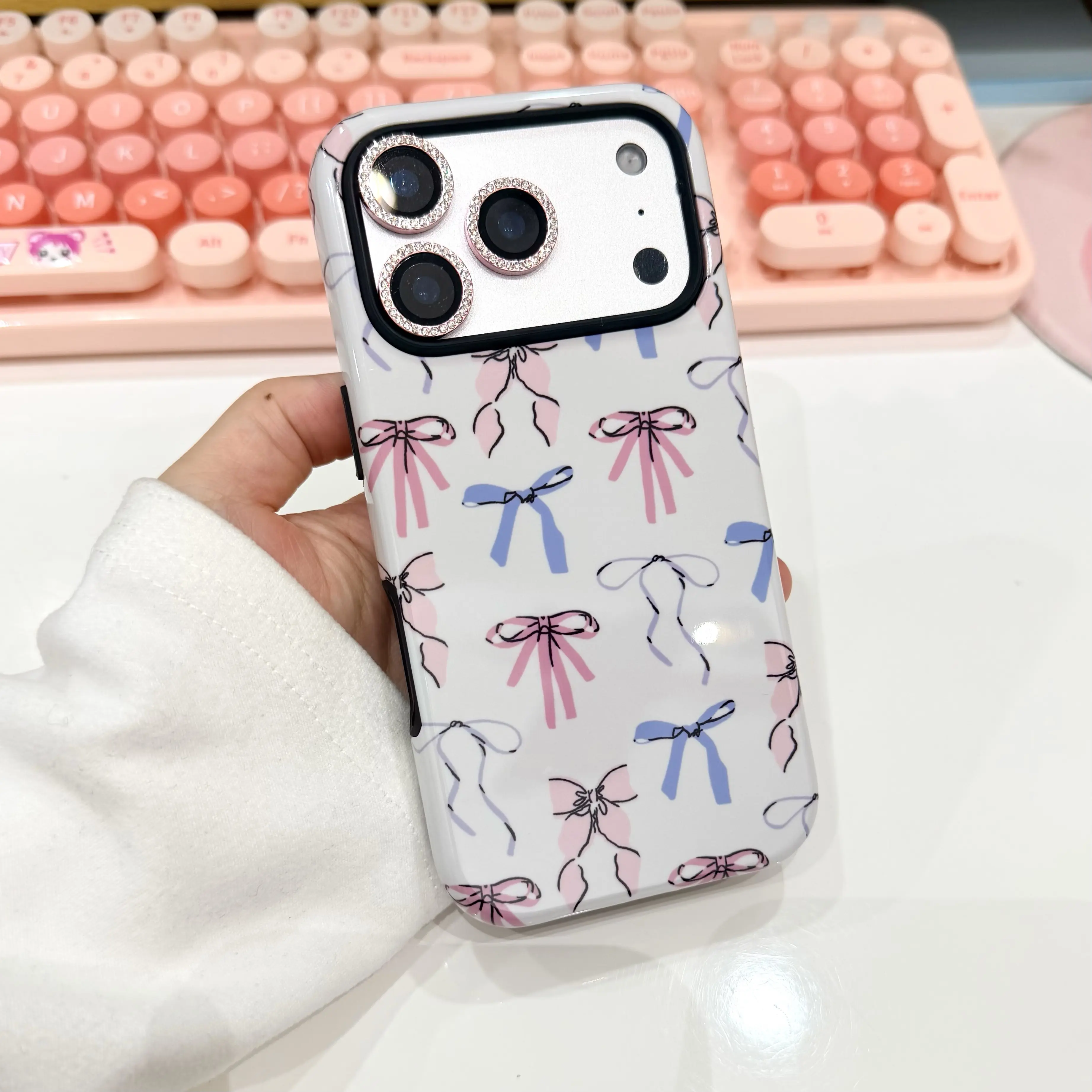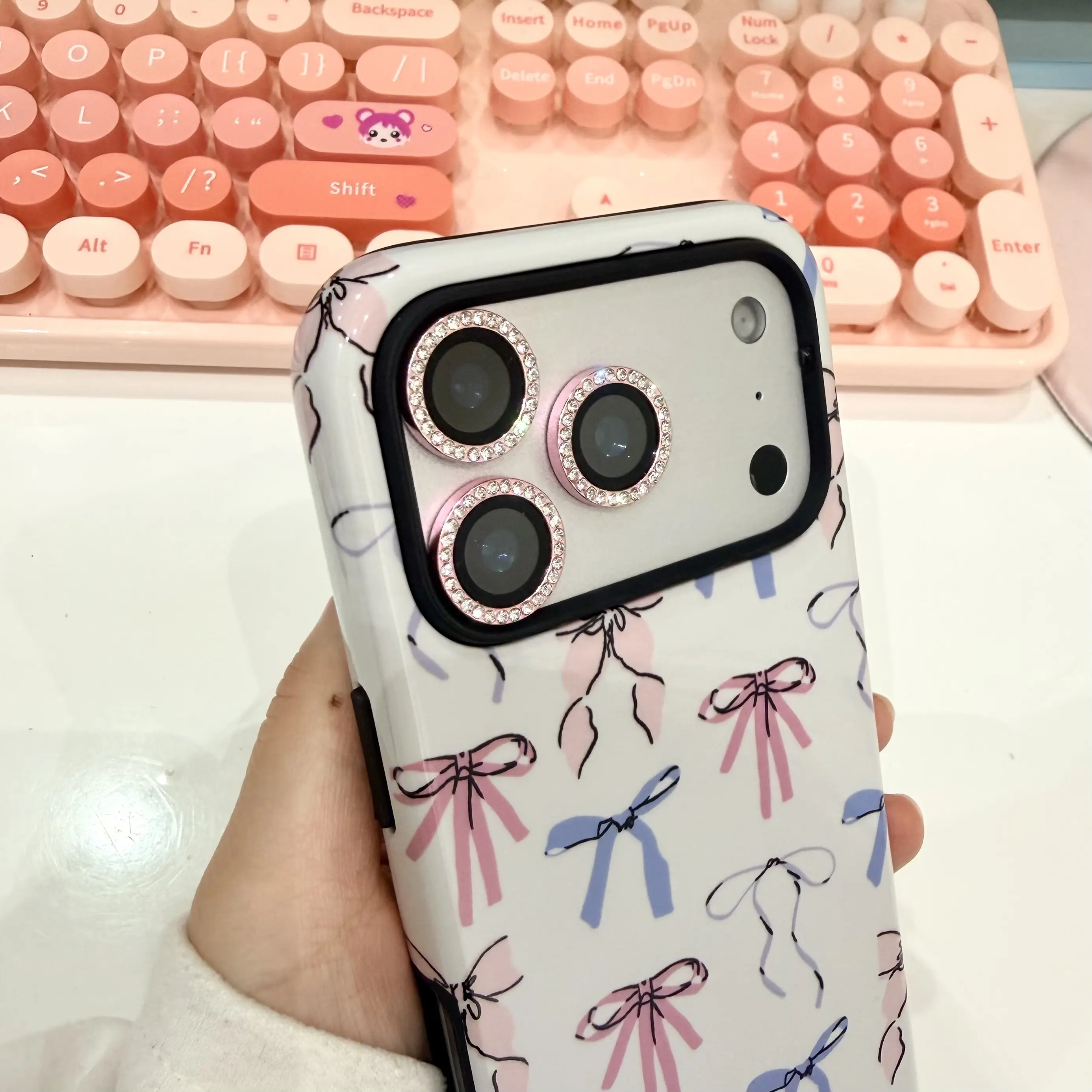 Cute bow iPhone case, hard shell phone cover, dual-layer shockproof design, compatible with iPhone 17/16/15/14/13 Pro/Plus and iPhone 17/16/15 Pro Max cases