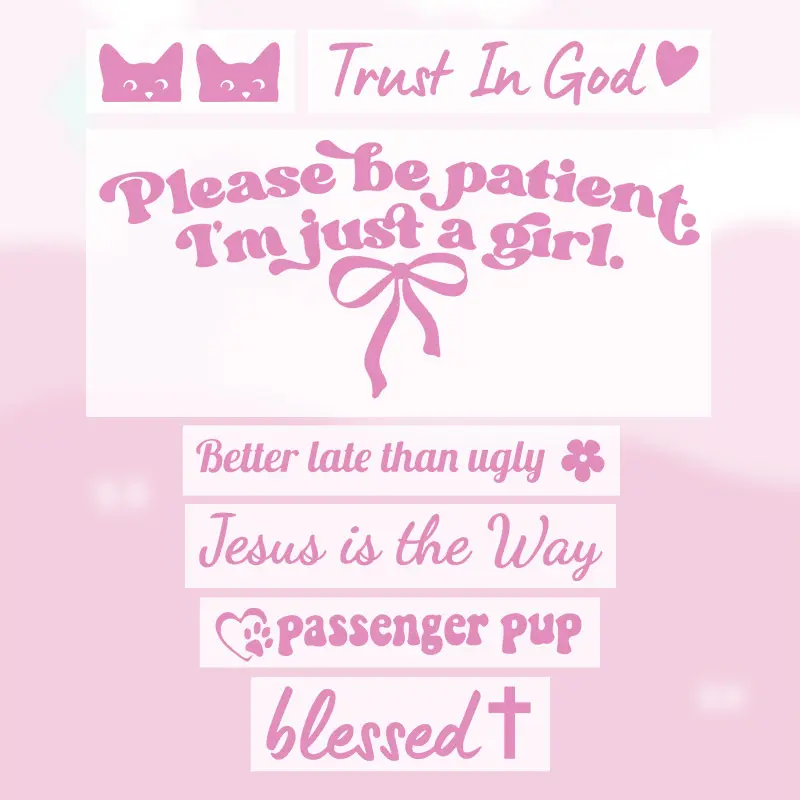 JOYTUTUS Clean girl whole set Premium Version Cute & Funny Car Bumper Decals with 7 Unique Patterns Coquette Bow Stickers for Car Window Decoration Fun Easy to Use Faith Gift Girly Stickers Car Decoration Mirror Room Decor Gift Ideas Valentine's Day Gifts
