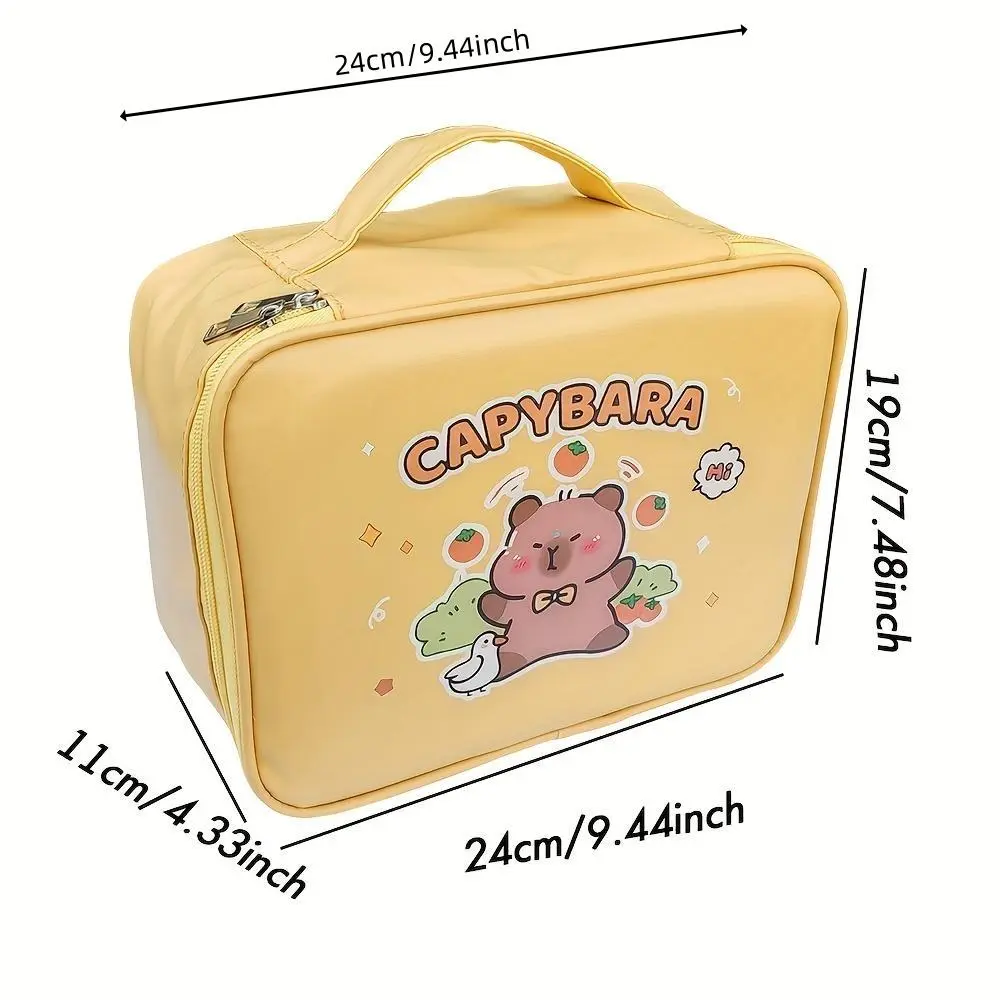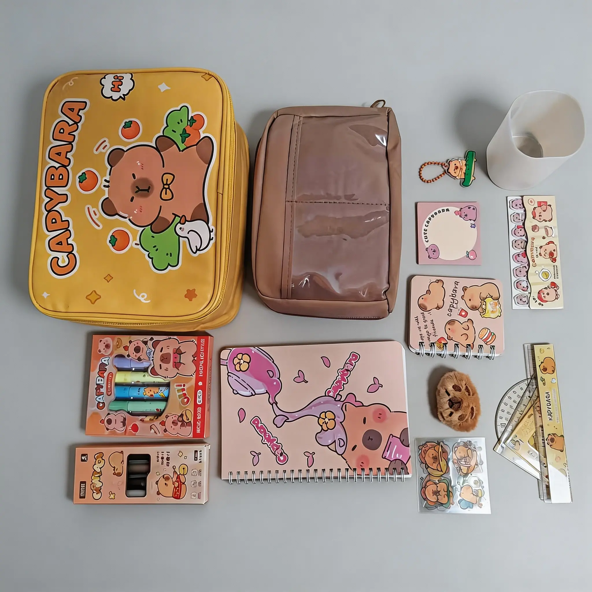 I should have read the post more clearly, does not come with anywhere near what is pictured. There are much cheaper sets out there but I went with this $30 ones because I thought it came with a lot more than it did. And the pencil case is a boring brown bag, no capybaras on it.