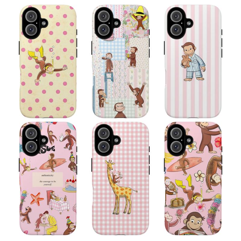 Cute Cartoon Monkey Tough Phone Case, Curious Georgeee, Fun Pink Animal Design Protective Phone Cover for Girls & Kids, Protective Cover, Pink Tone Case