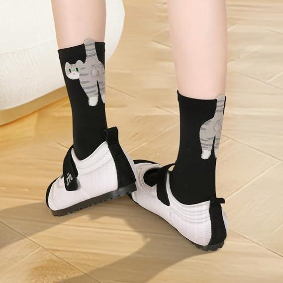 ·Versatile and Playful Styles: Choose between two fun styles—the orange cat (with a White background) or the gray cat (with a black background). Both options are great additions to any set of women's cat socks, making them an essential piece for any cat lover’s sock drawer!