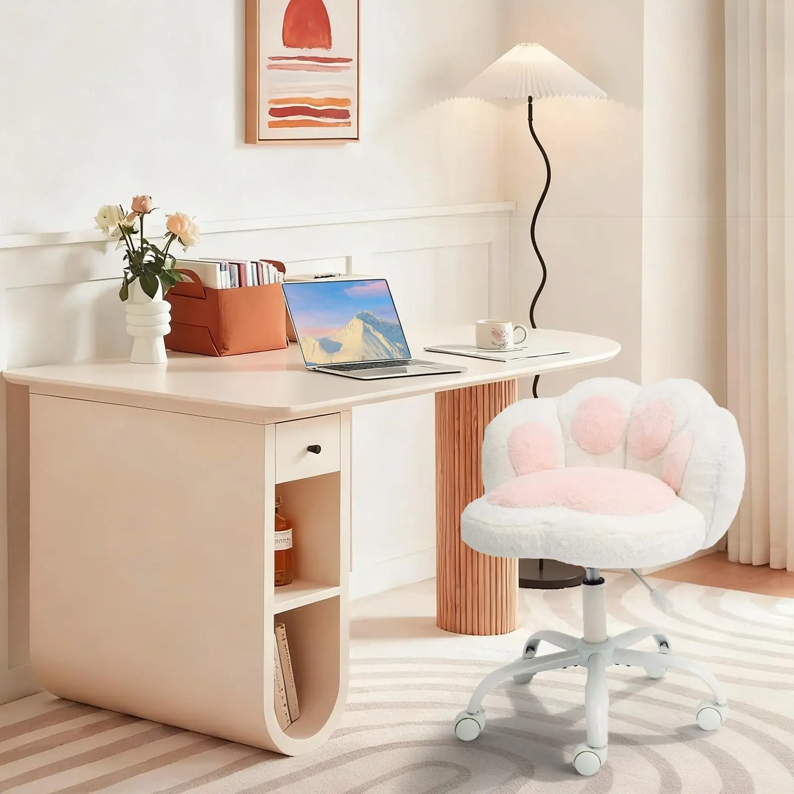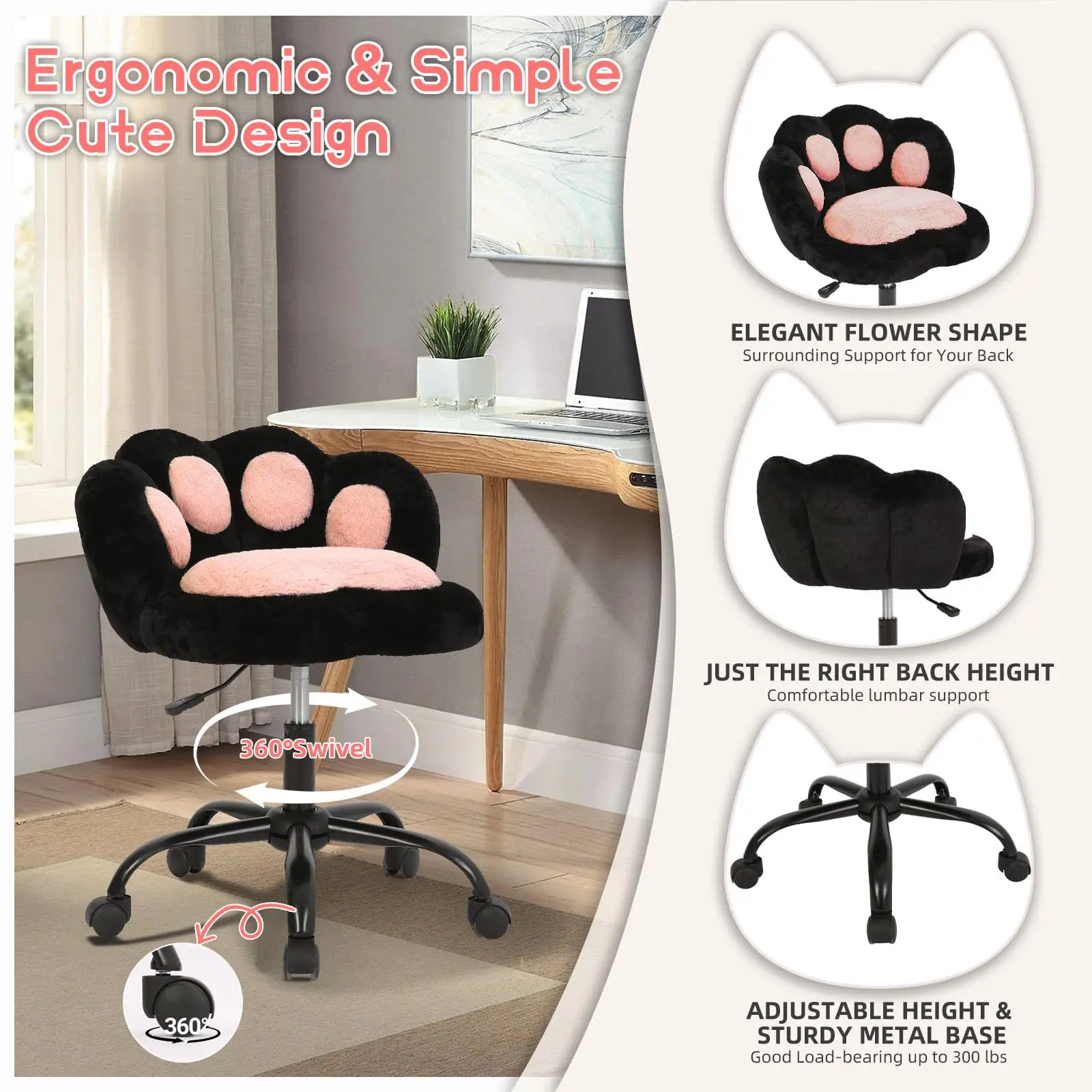 ·Ergonomic Comfort & Versatile Seating: This cute swivel chair designed with a curved backrest and high-density foam cushion, the chair cradles your spine to minimize fatigue. Whether for work, gaming, or relaxing, it keeps you comfortably supported during long hours of use.