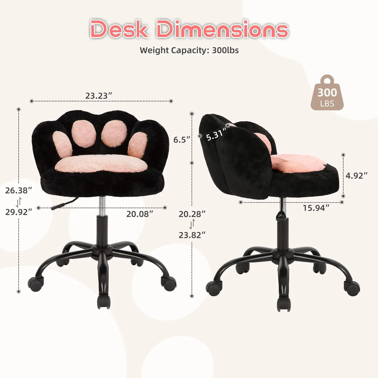 ·Sturdy & Reliable for Daily Use:Built with a reinforced nylon base and durable metal frame, this desk chair supports up to 300 lbs. Its resilient construction ensures lasting stability, making it a dependable seating choice for kids, teens, and adults alike.