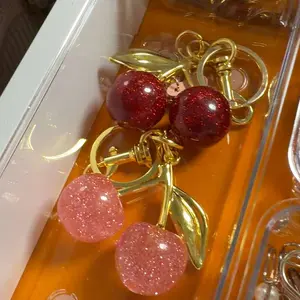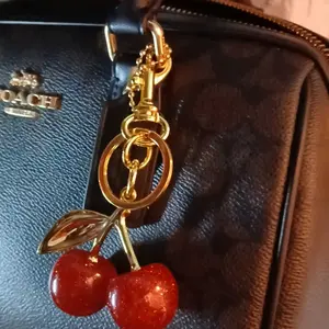 These cherries are so cute so glamorous so glittery the perfect outlet to my purse the perfect accessory small fit on any bag your purse your work bag your favorite bag must get 10 out of 10 highly recommend so cute very Demere