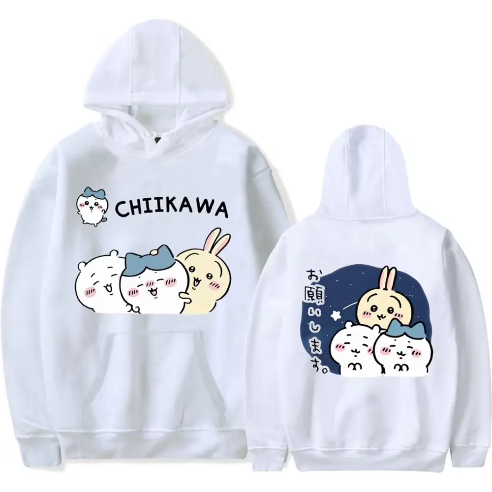 ·Lovely Chiikawa Printed: This hoodie features a charming Chiikawa print, perfect for anime graphic lovers. 📚