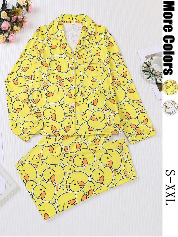 Cute Duck Print Women's Pajama Set, Long Sleeve Shirt Collar Button Soft Top & Loose Elastic Pants Pjs, Casual Home WearCute Duck Print Women's Pajama Set, Long Sleeve Shirt Collar Button Soft Top & Loose Elastic Pants Pjs, Casual Home WearCute Duck Print Women's Pajama Set, Long Sleeve Shirt Collar Button Soft Top & Loose Elastic Pants Pjs, Casual Home WearCute Duck Print Women's Pajama Set, Long Sleeve Shirt Collar Button Soft Top & Loose Elastic Pants Pjs, Casual Home WearCute Duck Print Women's Pajama Set, Long Sleeve Shirt Collar Button Soft Top & Loose Elastic Pants Pjs, Casual Home Wear