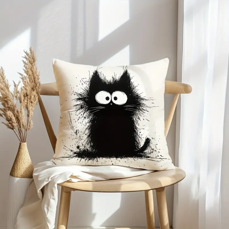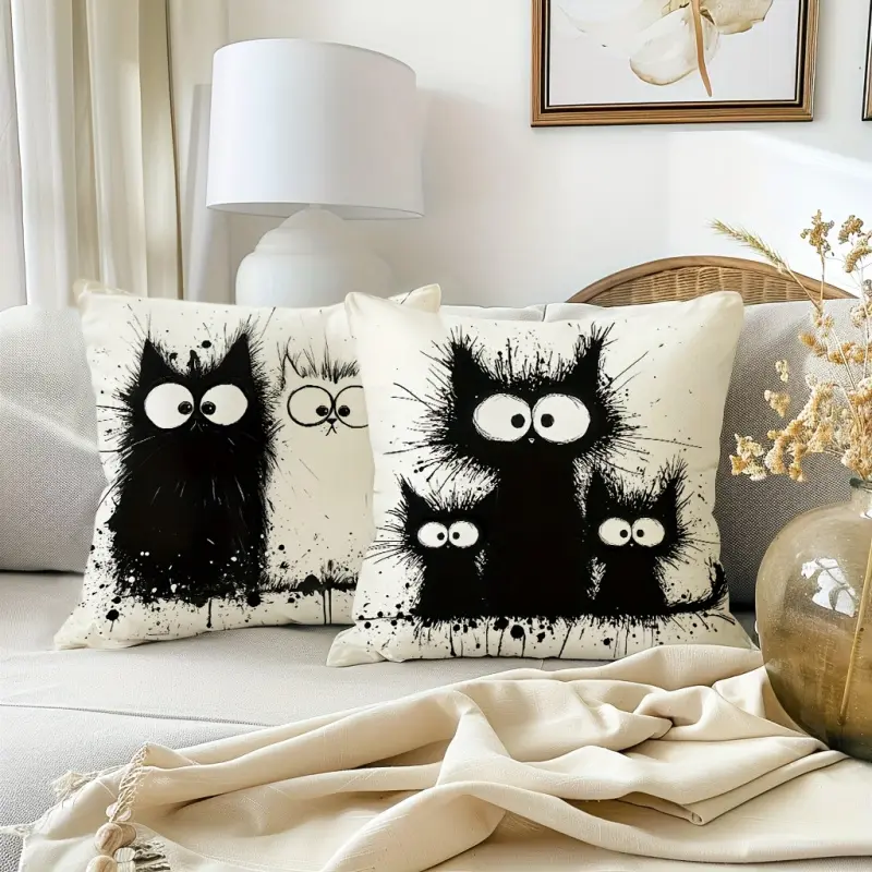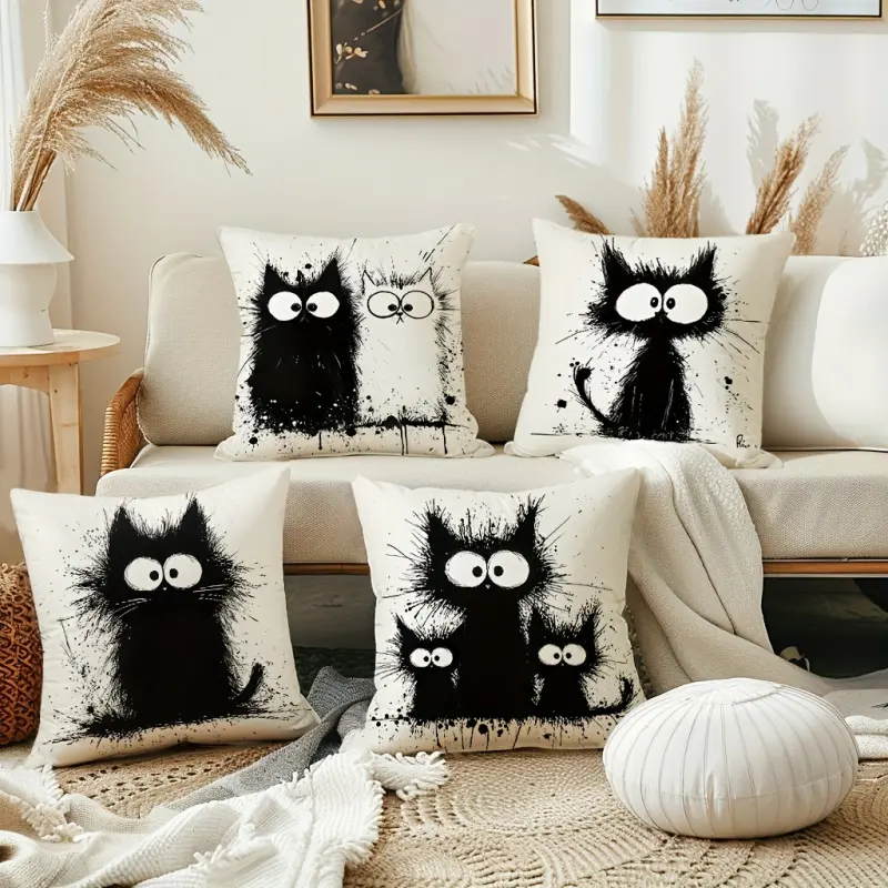 4pcs, Cute Exploding Cat Throw Pillow Simple Black Cat Decorative Cushion Covers, Farmhouse Party Home Decor Pillowcases, for Couch Sofa Living Room Bedroom, Without Pillow Inserts.