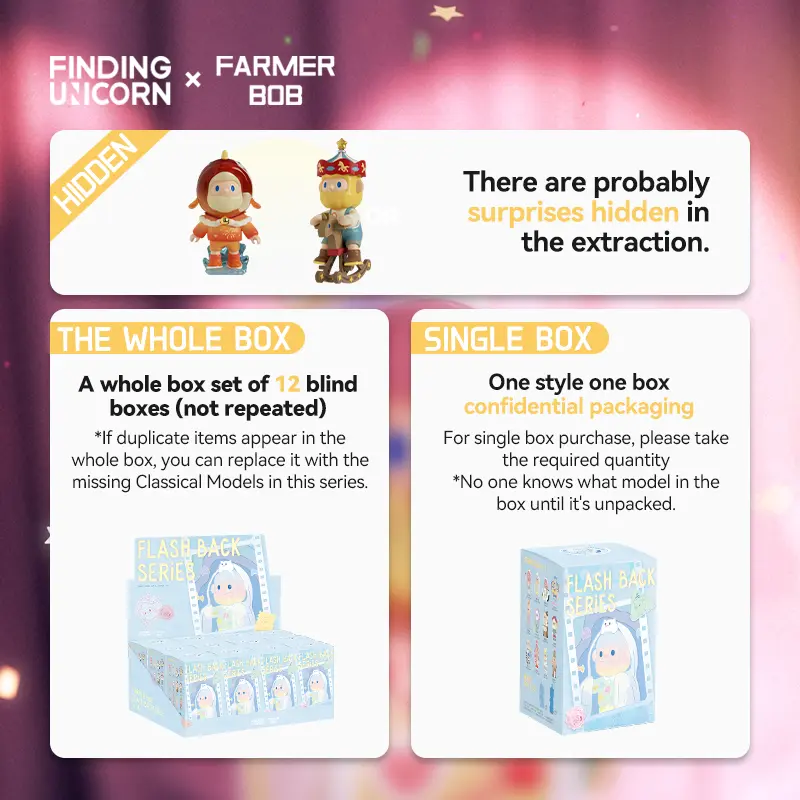 ✨ [FINDING UNICORN]【Live Unboxing, Final Sale】 FARMER BOB FLASH BACK SERIES BILIND BOX. This cute figures desktop ornament is perfect for collectors. It's also a great birthday gift. The product code is HMZYQ8M7SC.