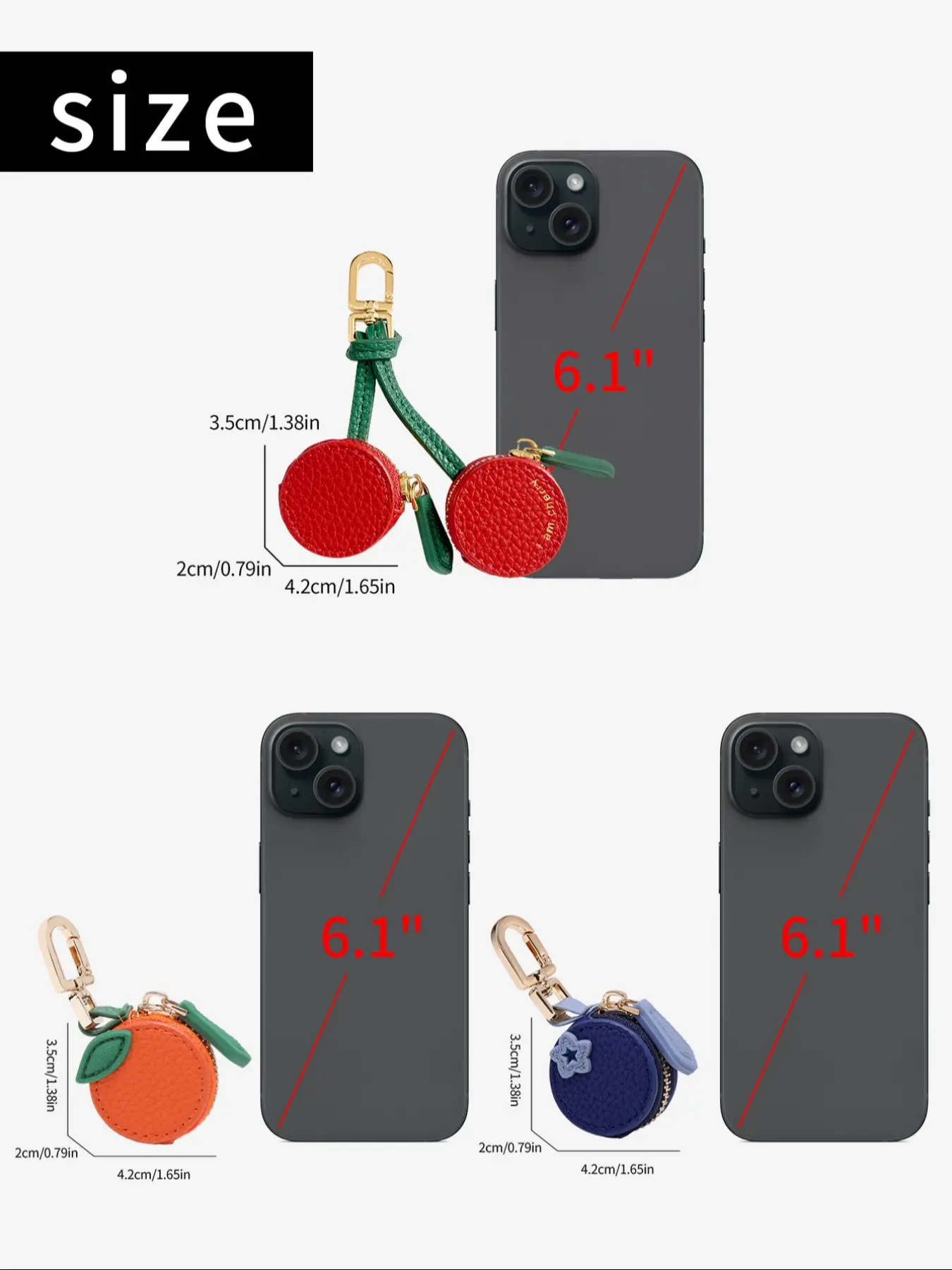 Absolutely love this little blueberry! It is super small, but super cute! Great little accessory.