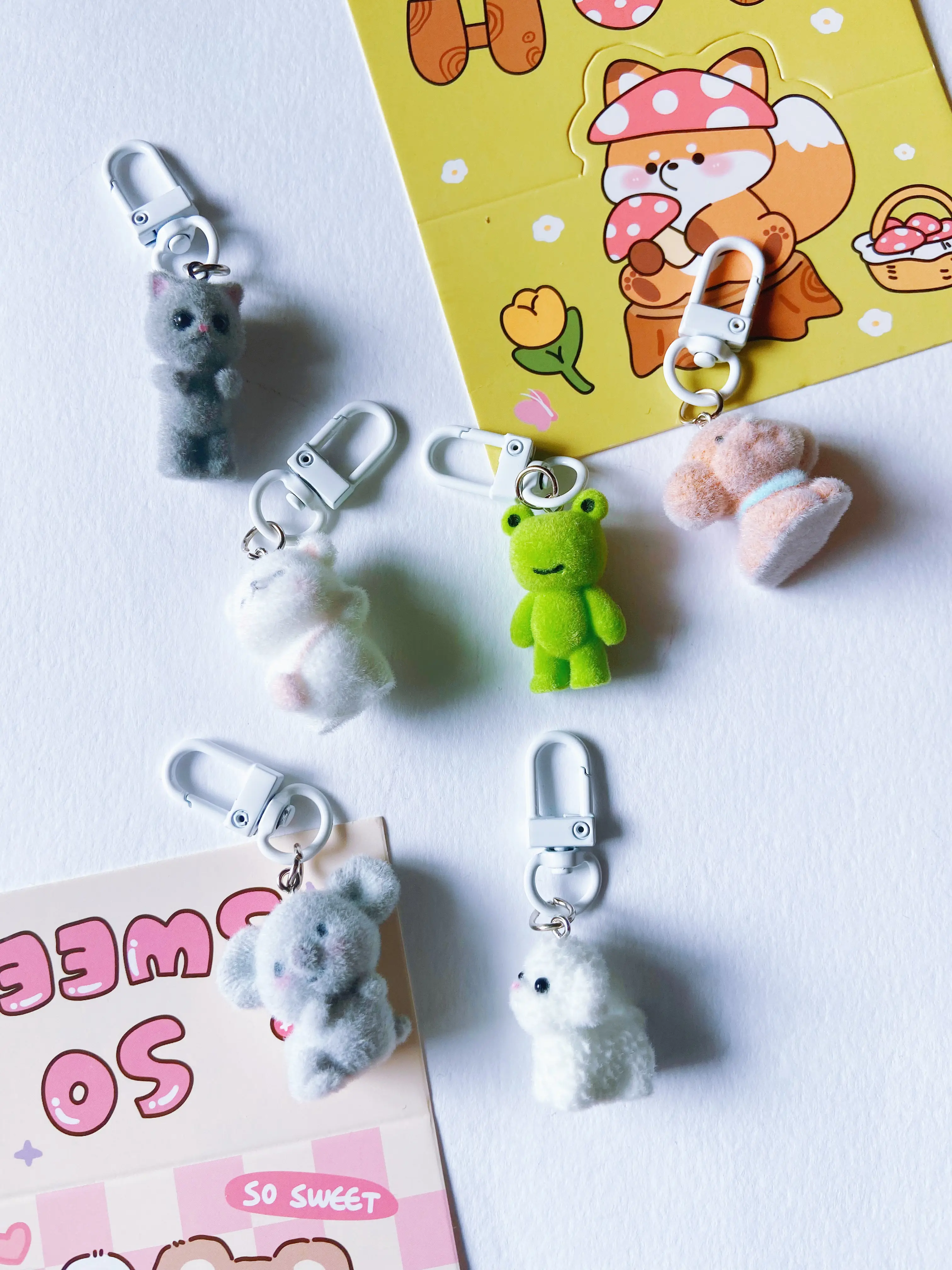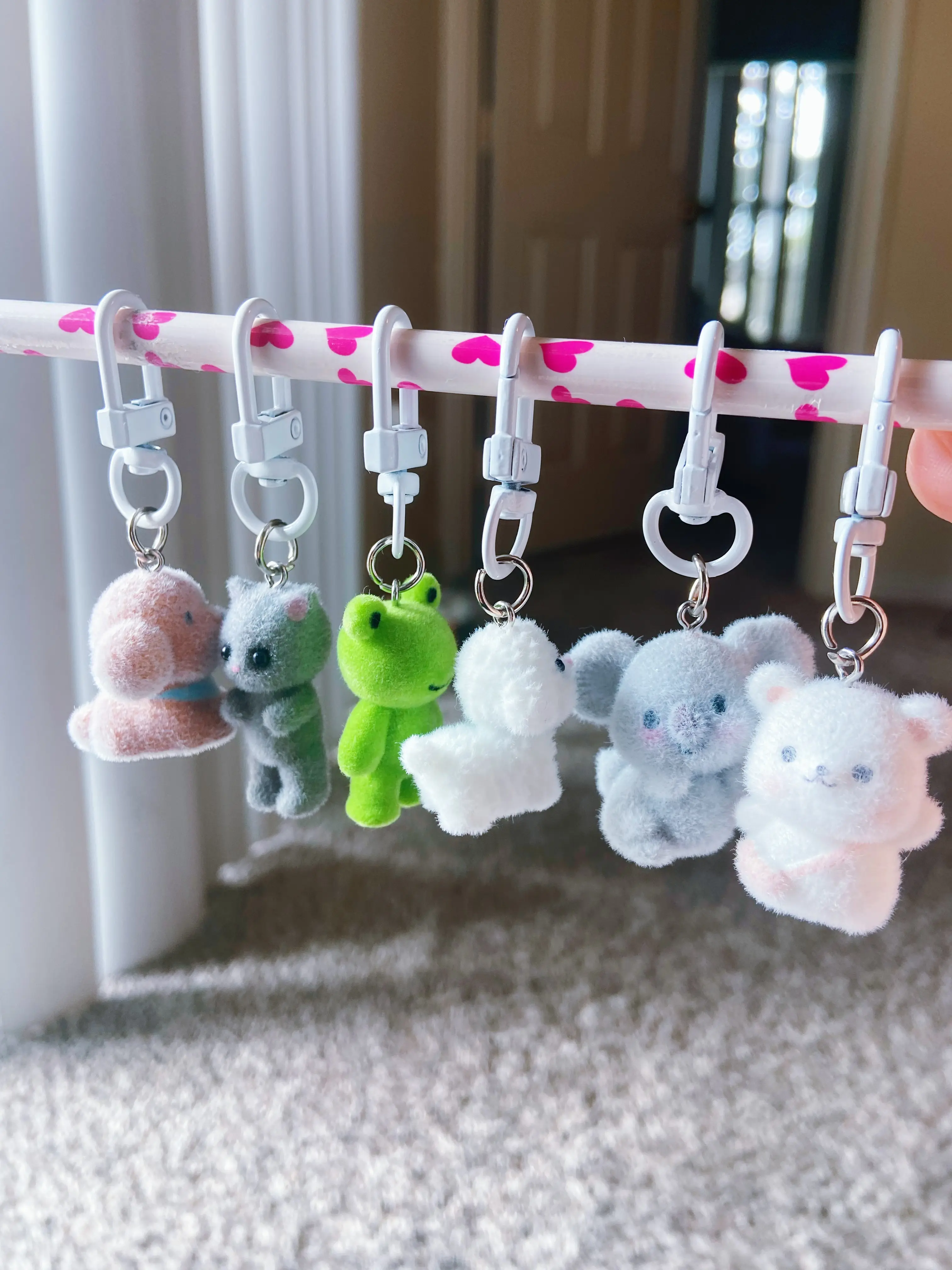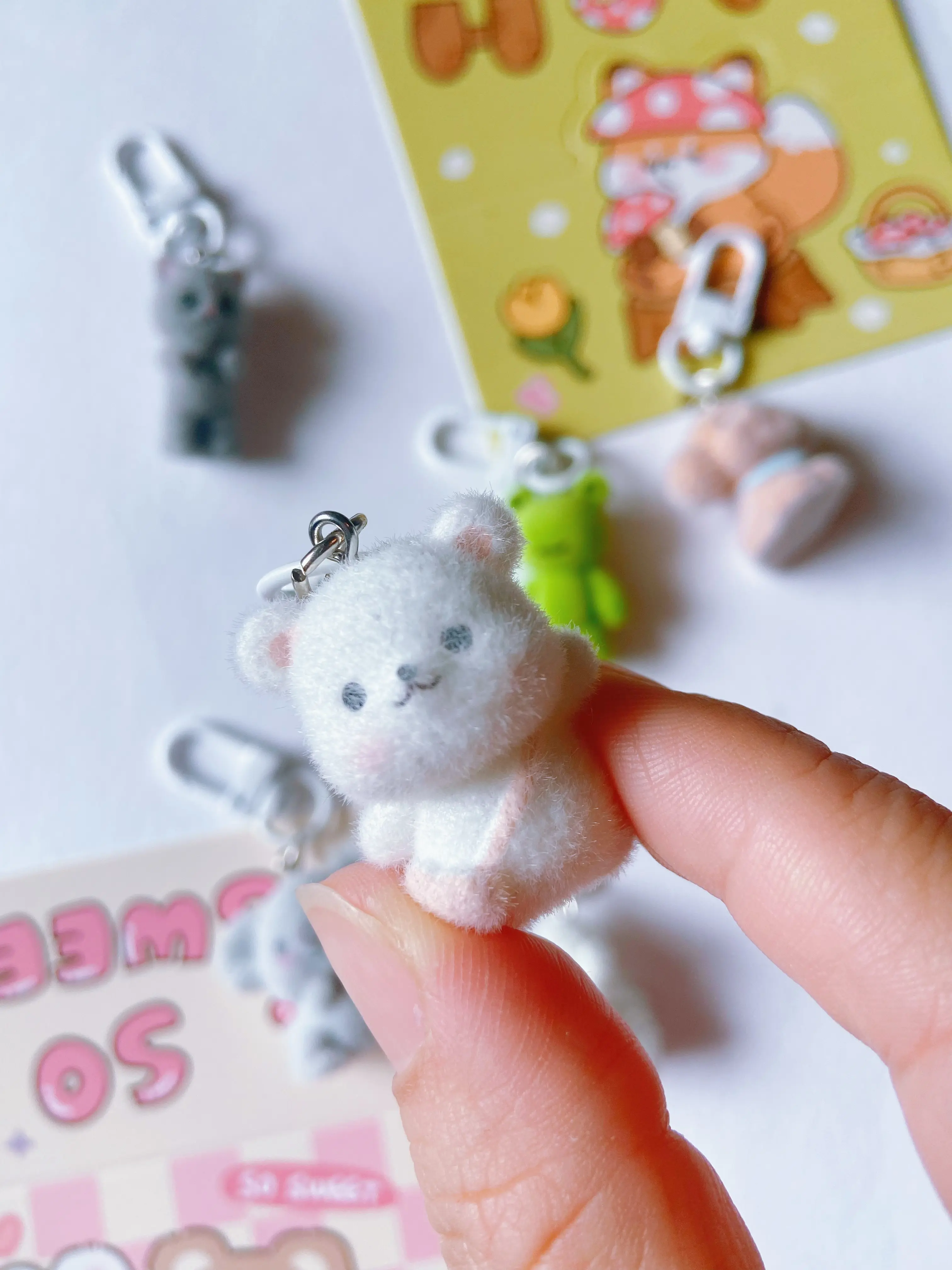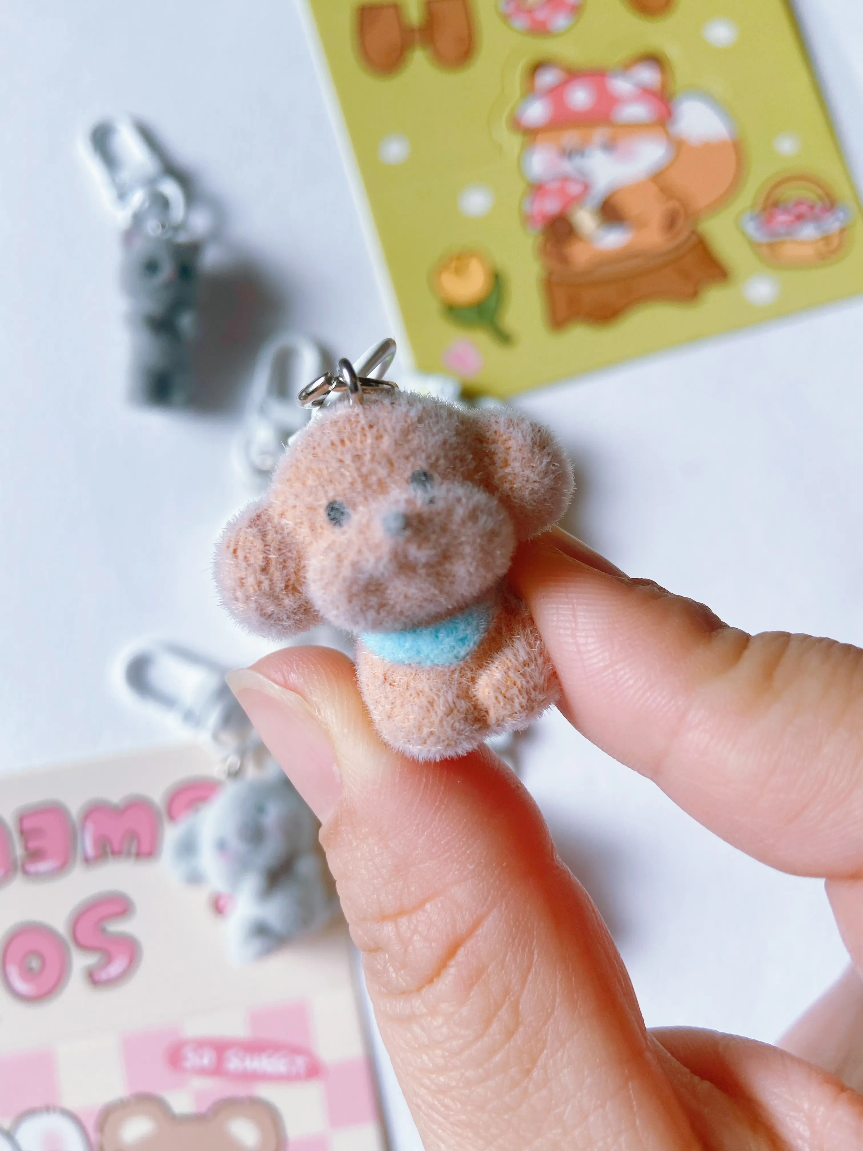 I absolutely love these fuzzy flocked keychain charms. I have so many different ones and add them to my badge reels and bags! 💓