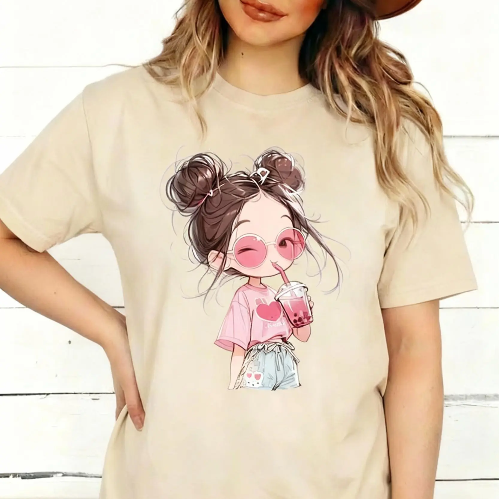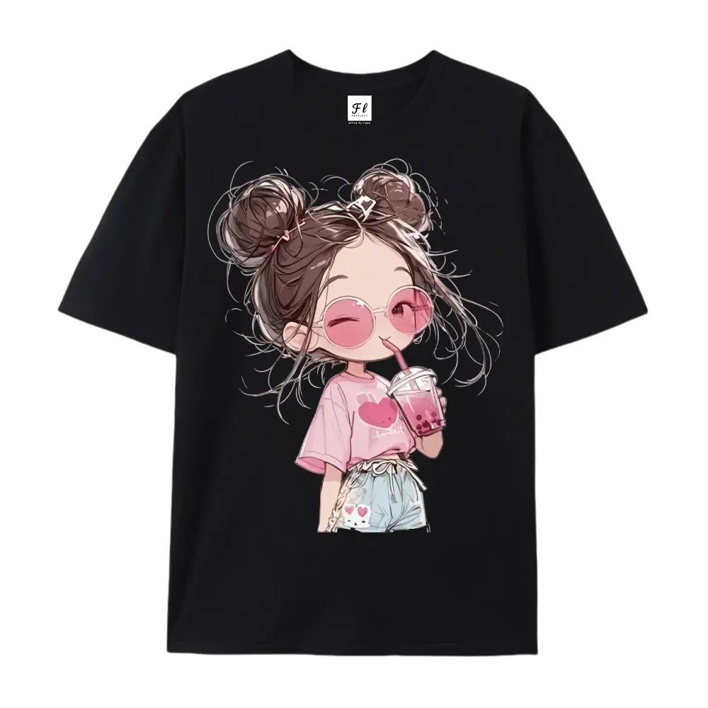 I absolutely love this pink shirt and this super cute and adorable girl sipping boba💓