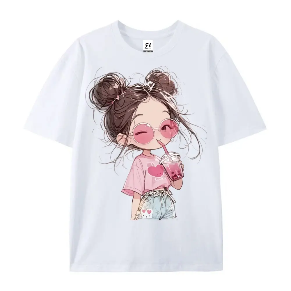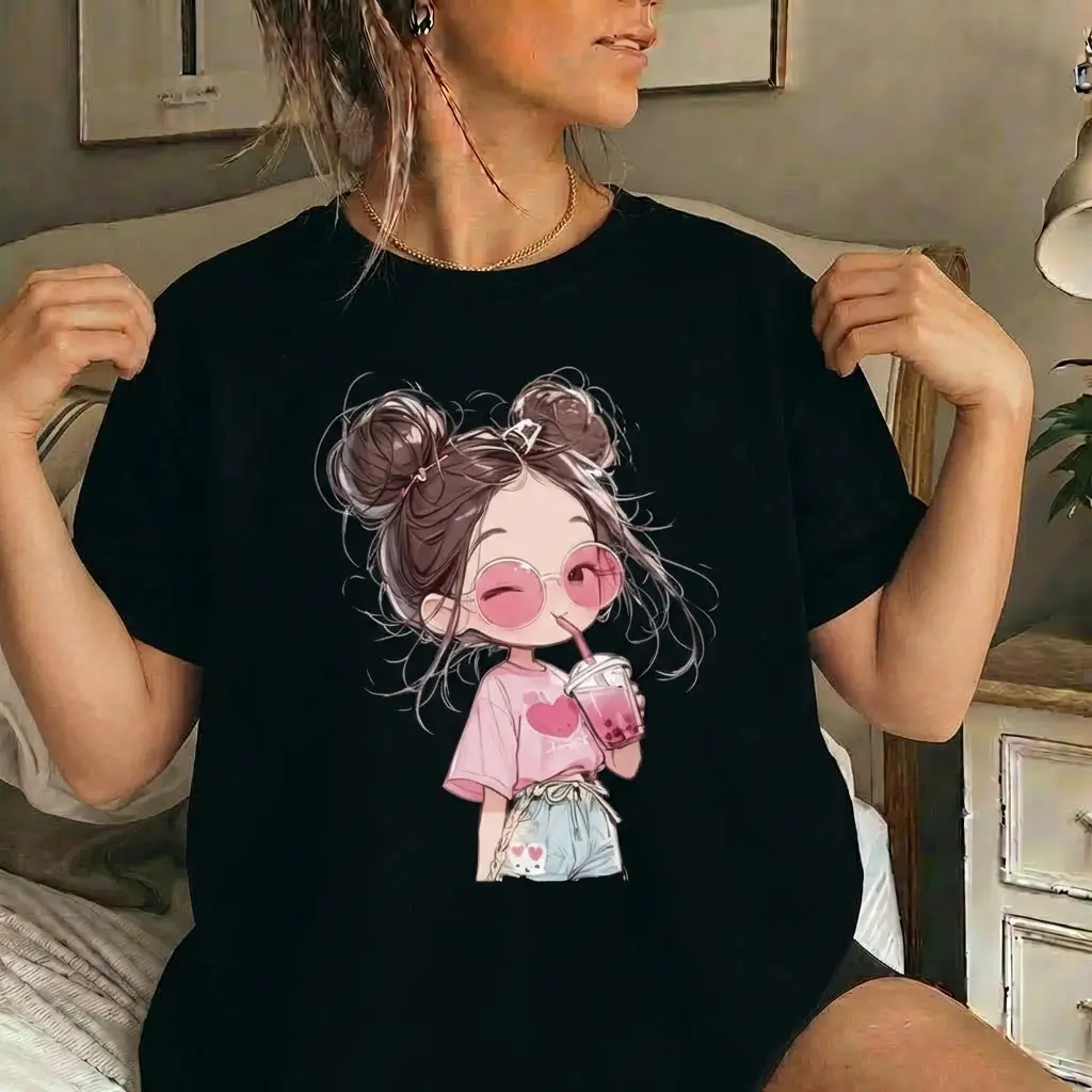 5. 100% Cartoon Cute Printed Short Sleeve Round Neck T-Shirt, Summer New, Loose Fit, for Women vintage graphic tees
