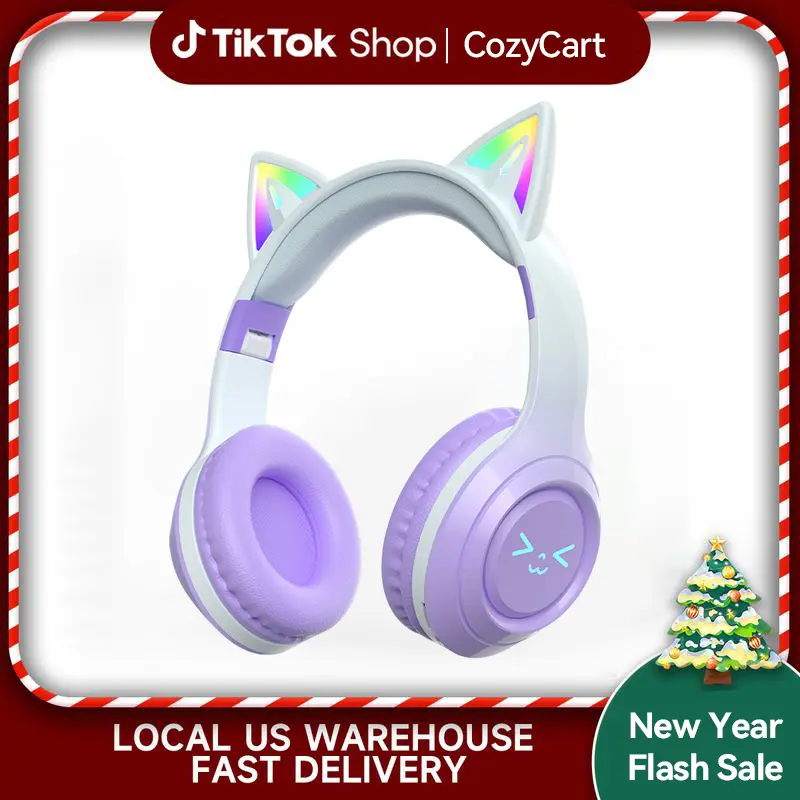 🎧 Cute Light Up Cat Ear Wireless Headphones