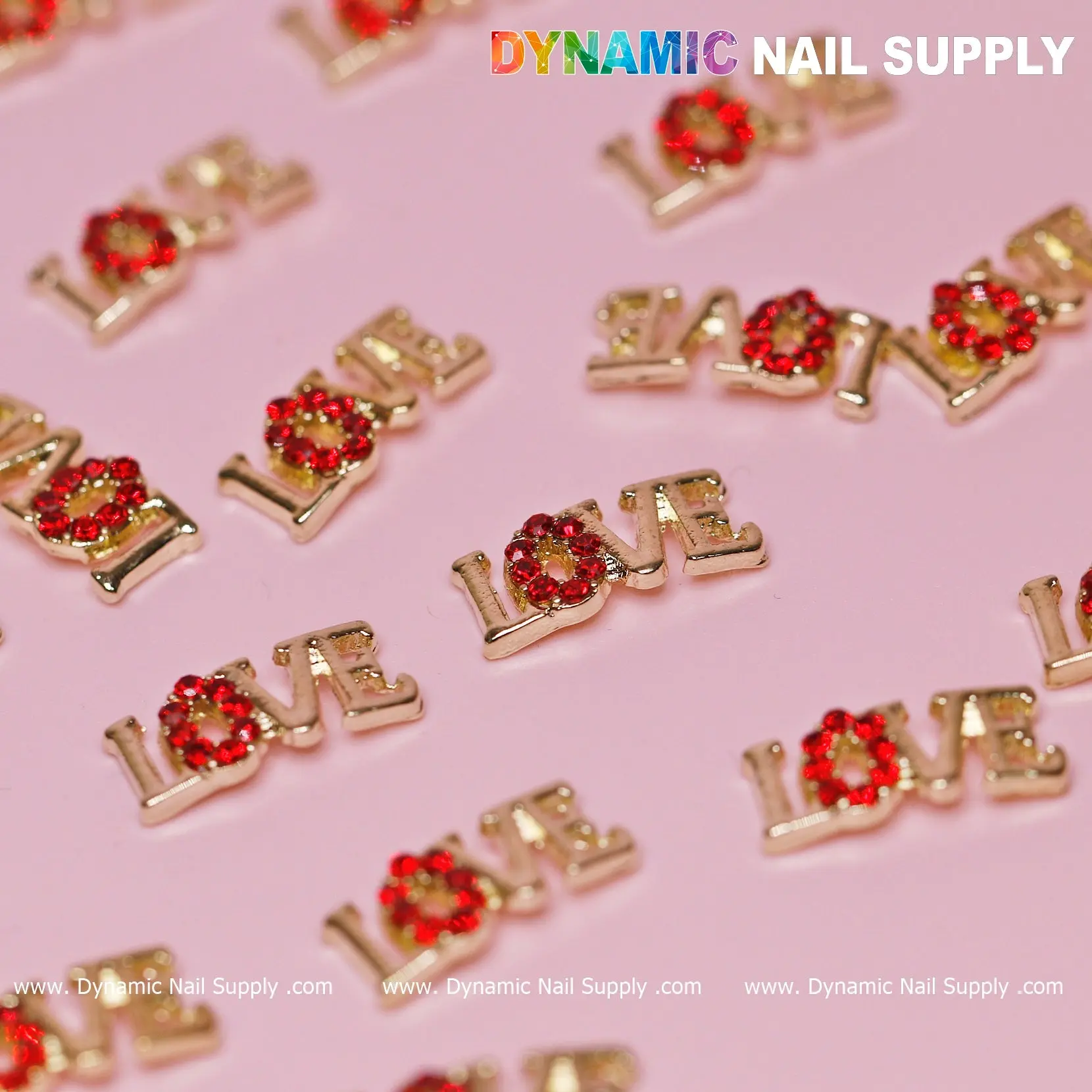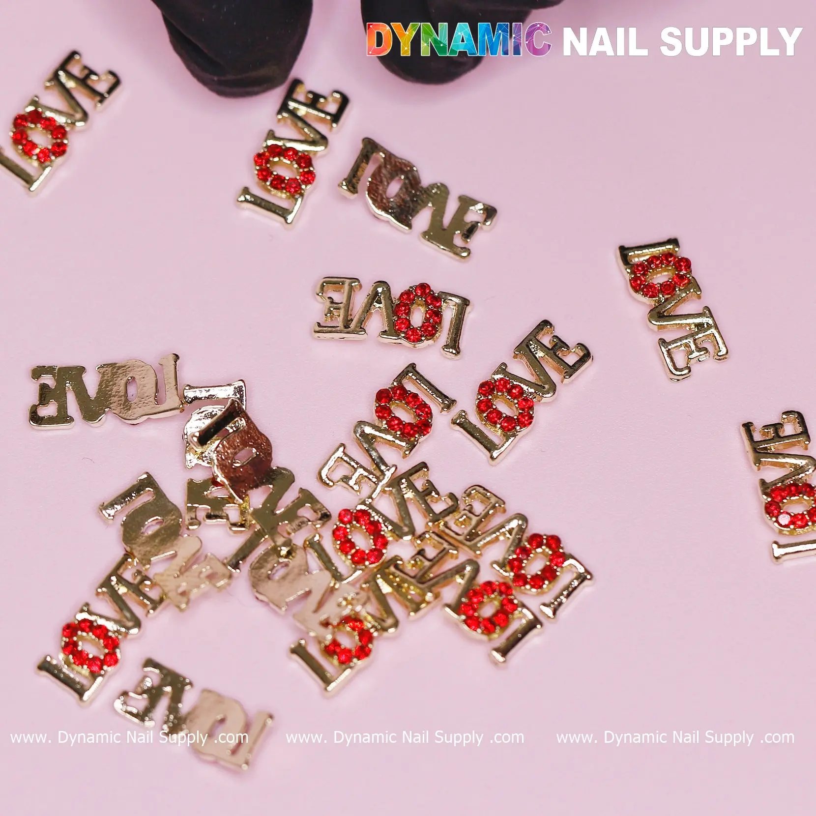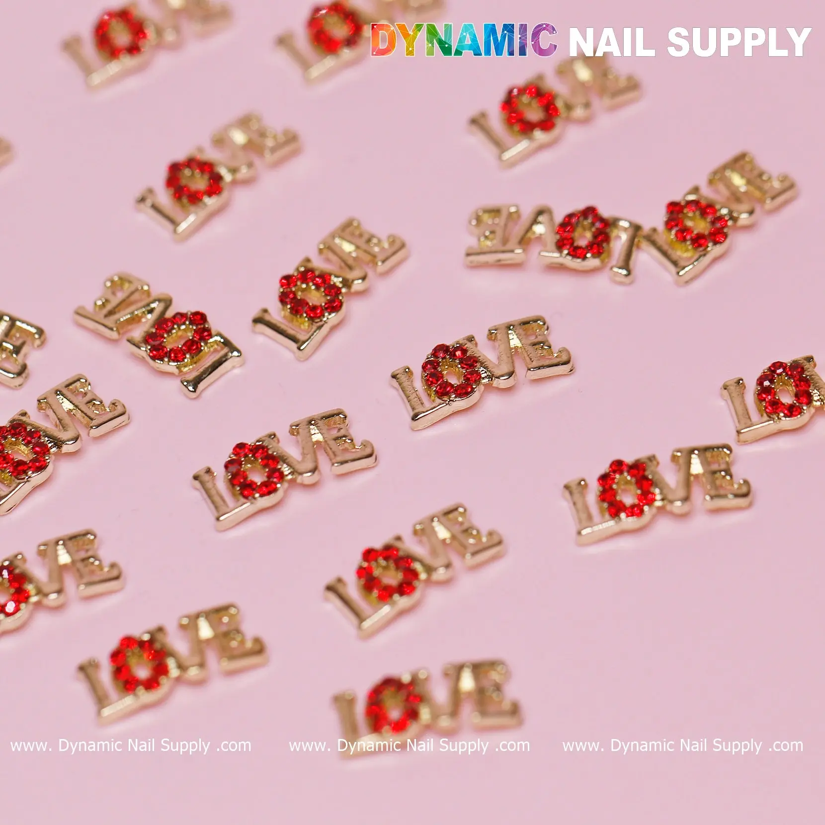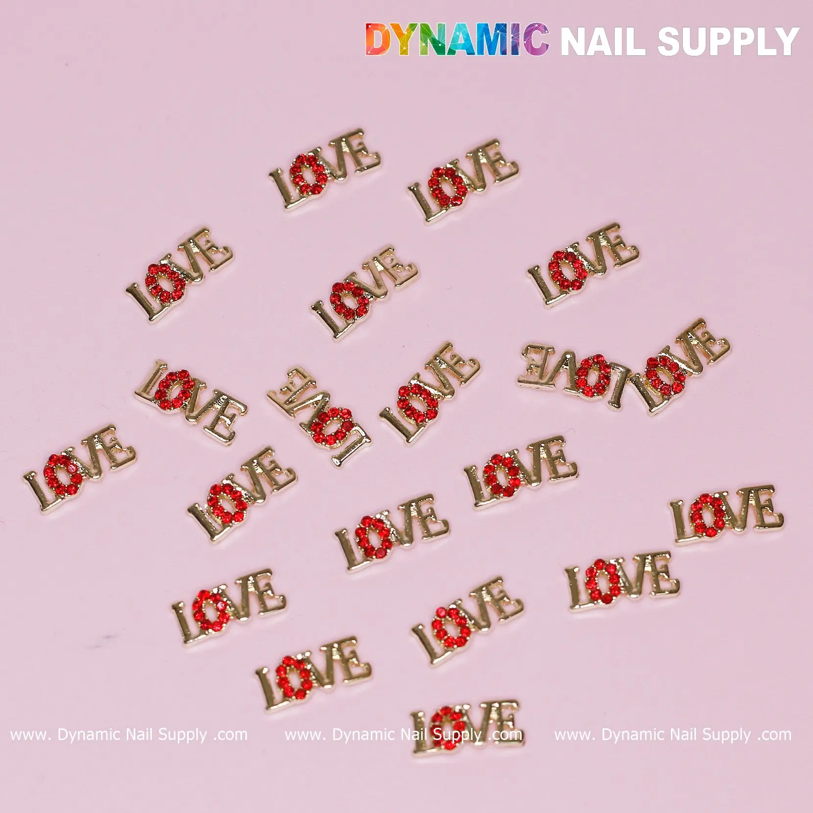 20 pcs Cute Letters Love Word Nail Charms ( O letter is engraved by small red stones)