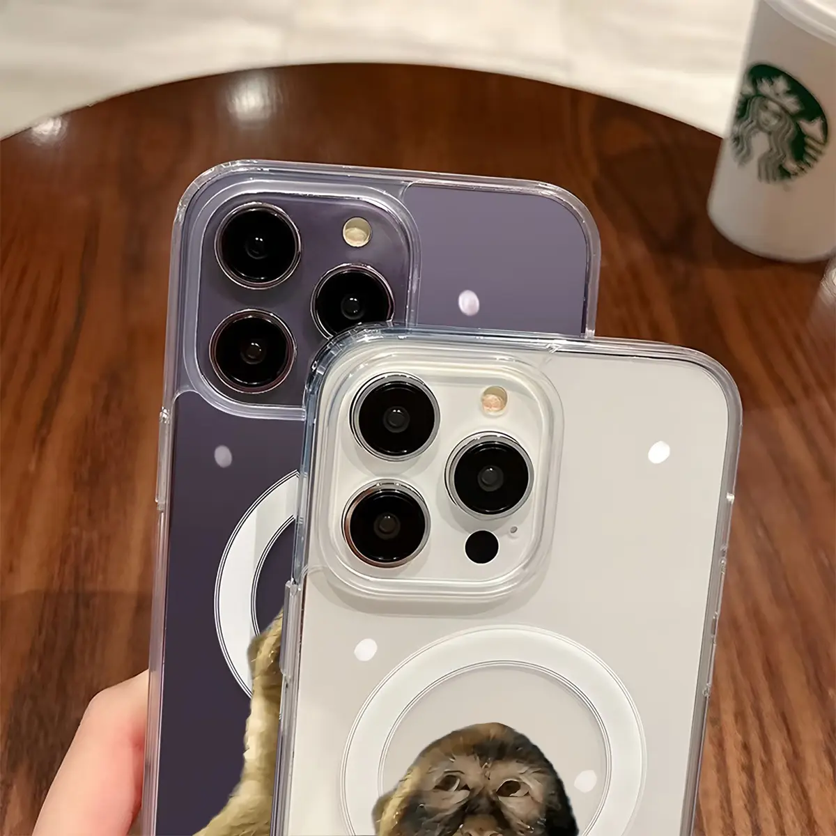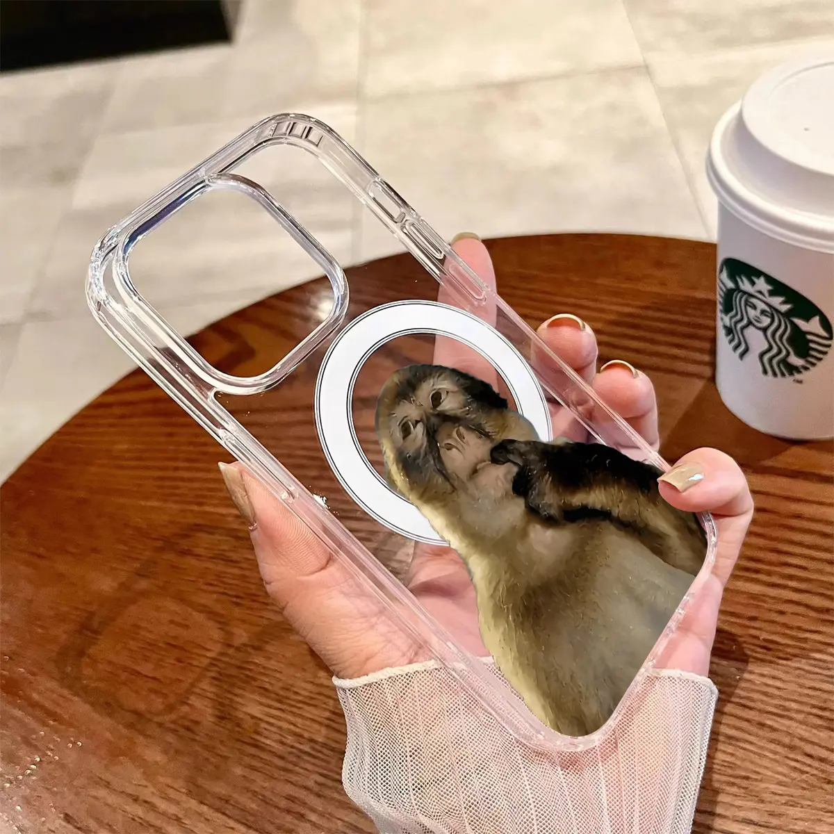 Cute Monkey Pattern Magnetic Transparent Shockproof Ultra-Thin Luxury iPhone X Xsmax 11 12 13 14 15 16 17 Pro Max Plus Air MagSafe Phone Case Cover