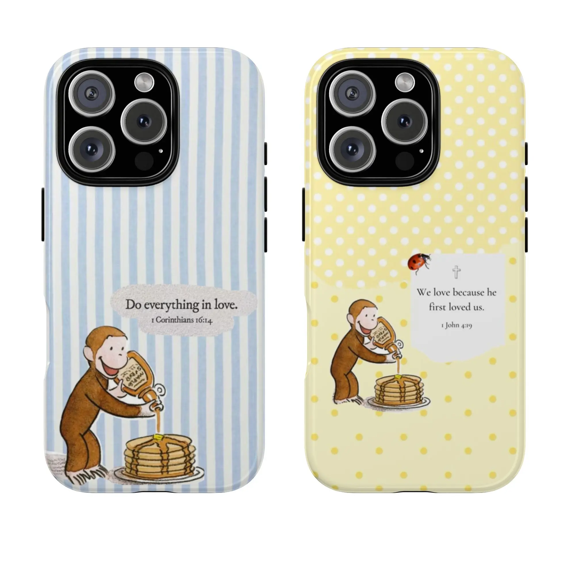 Cute Monekey Phone Cover, Curious George Phone Case, Bible Verse Phone Case with Cute Monkey Pancake Design, Christian Phone Cover, Protective Cover, Gift for fans