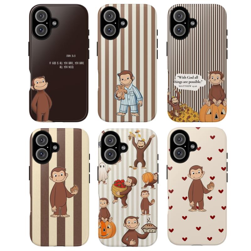 Cute Monkey Tough Phone Case, Curious George Phone Cover,  Brown Striped & Heart Pattern Christian Quote Design Protective Cover, gift